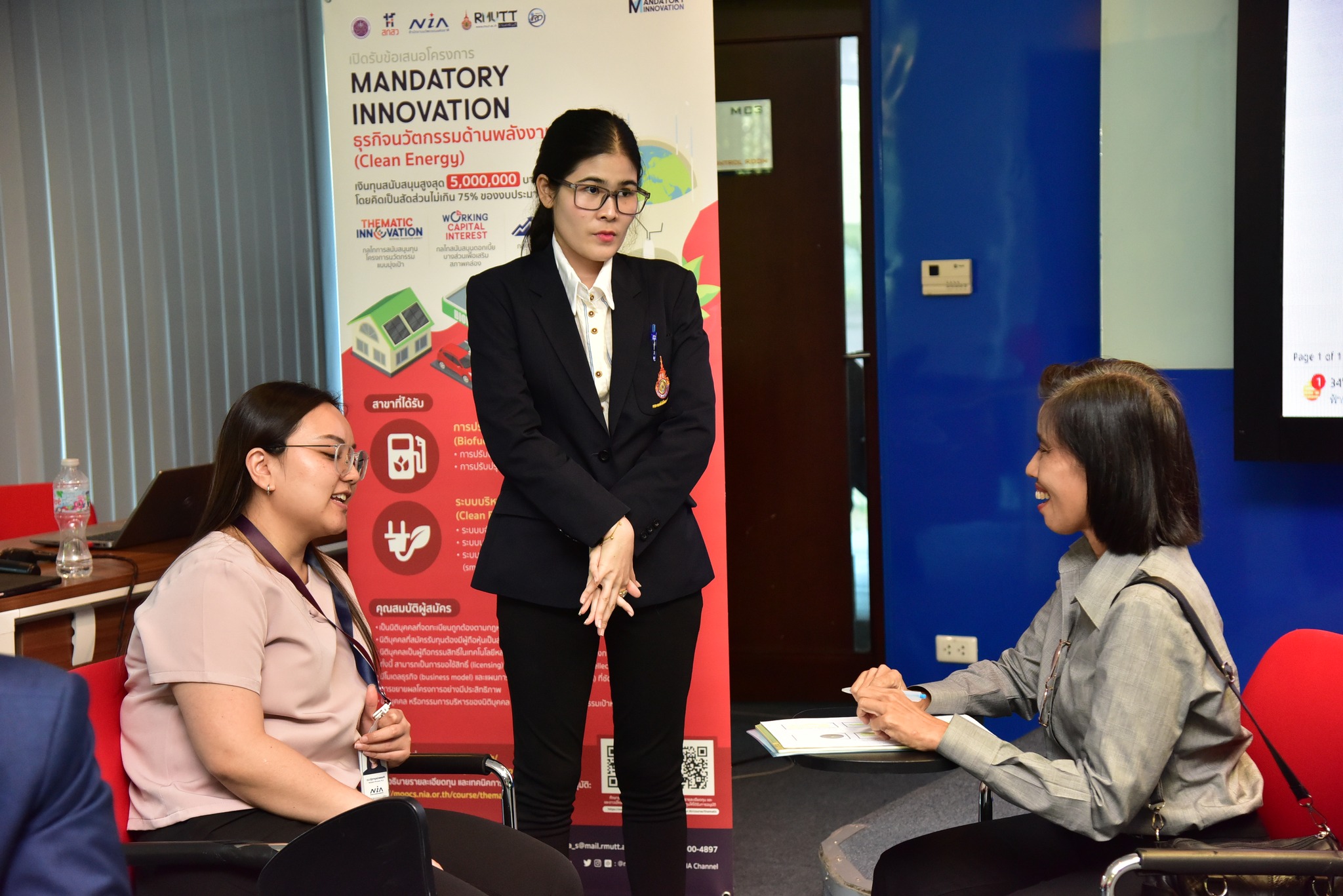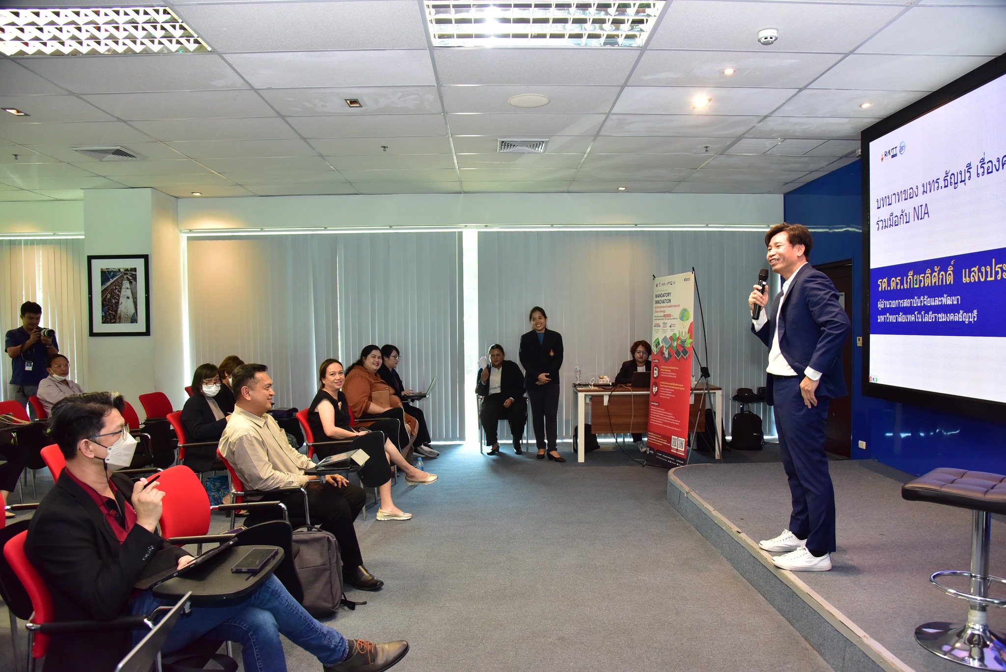 คุณวัลยา วิศาลบรรณวิทย์ และ คุณพิชชารีย์ กีรติธากุล ฝ่ายนวัตกรรมเพื่อเศรษฐกิจ สนช. ได้ทำการแนะนำธีม และตัวอย่างโครงการ ตลอดจนขั้นตอนการสมัครเข้าร่วมโครงการ