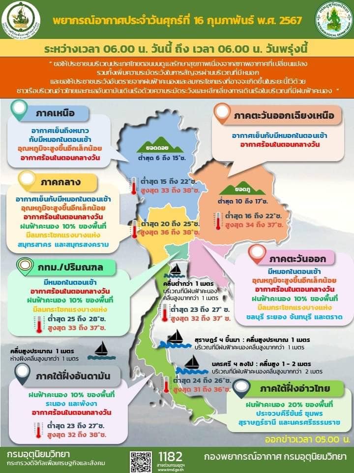 11.00 กรมอนามัย เผยค่าฝุ่น PM 2.5 เกินค่ามาตรฐาน โดยเฉพาะในพื้นที่ กทม. และปริมณฑล มีแนวโน้มเพิ่มสูงขึ้นต่อเนื่อง พร้อมแนะประชาชนเฝ้าระวังสุขภาพ