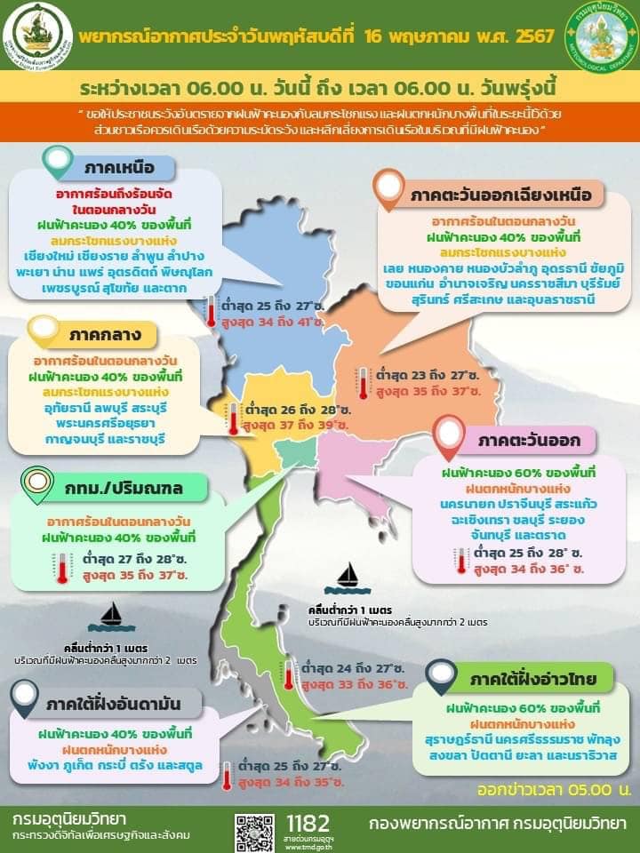 09.00 ฝนตกชุ่มฉ่ำทั่วไทย กรุงเทพปริมณฑล ร้อยละ 40 ของพื้นที่ ทะเลมีคลื่นสูงกว่า 2 เมตร