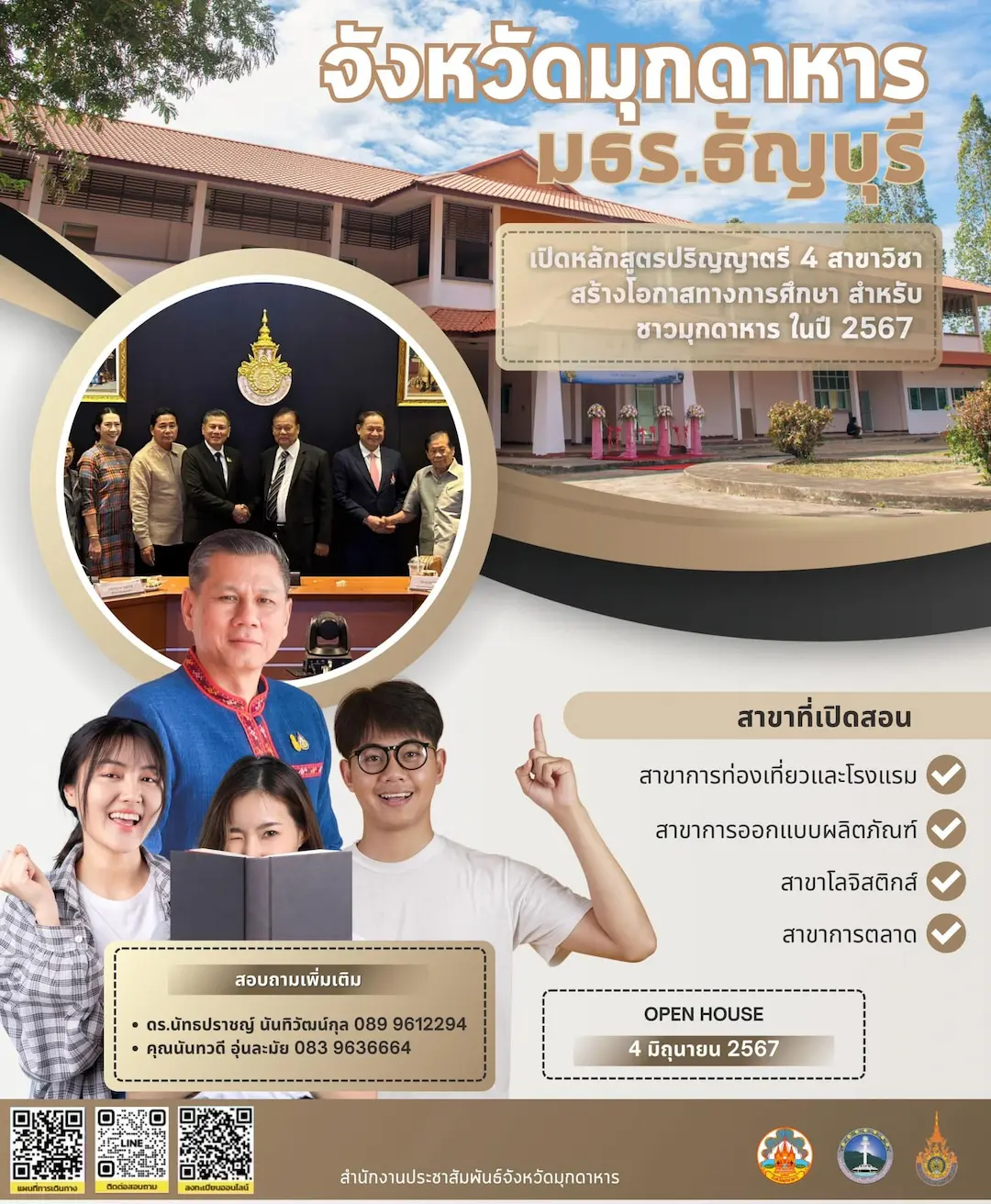 โดยเตรียมกำหนดจัดงาน Open House ในวันที่ 4 มิถุนายนนี้ ตั้งแต่เวลา 09.00 – 16.00 น. ณ ภูผาเจี้ย อาคารรวมใจ บ้านด่านคำ ตำบลมุกดาหาร ภายในงานจะมีกิจกรรมมากมาย อาทิ เวทีเสวนา ทิศทางการศึกษาเพื่อยกระดับการพัฒนาจังหวัด เวทีแลกเปลี่ยนความรู้ บูธกิจกรรม การแสดงทางวัฒนธรรม และความบันเทิง การจัดแสดงผลงานทางวิชาการด้านเทคโนโลยีและนวัตกรรม แนะนำหลักสูตรตอบโจทย์อาชีพยุคใหม่ ห้องเรียนตัวอย่าง และบูธอาหารเลิศรสจากท้องถิ่นและพื้นที่ต่าง ๆ