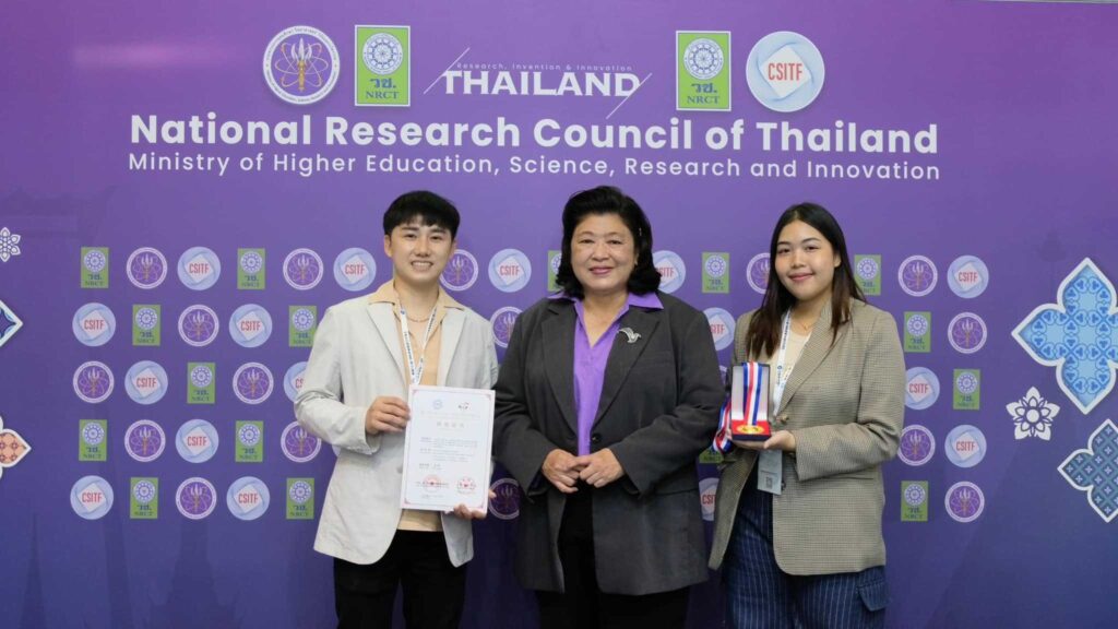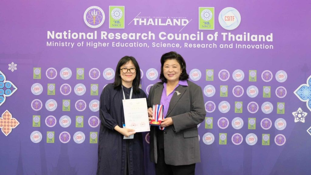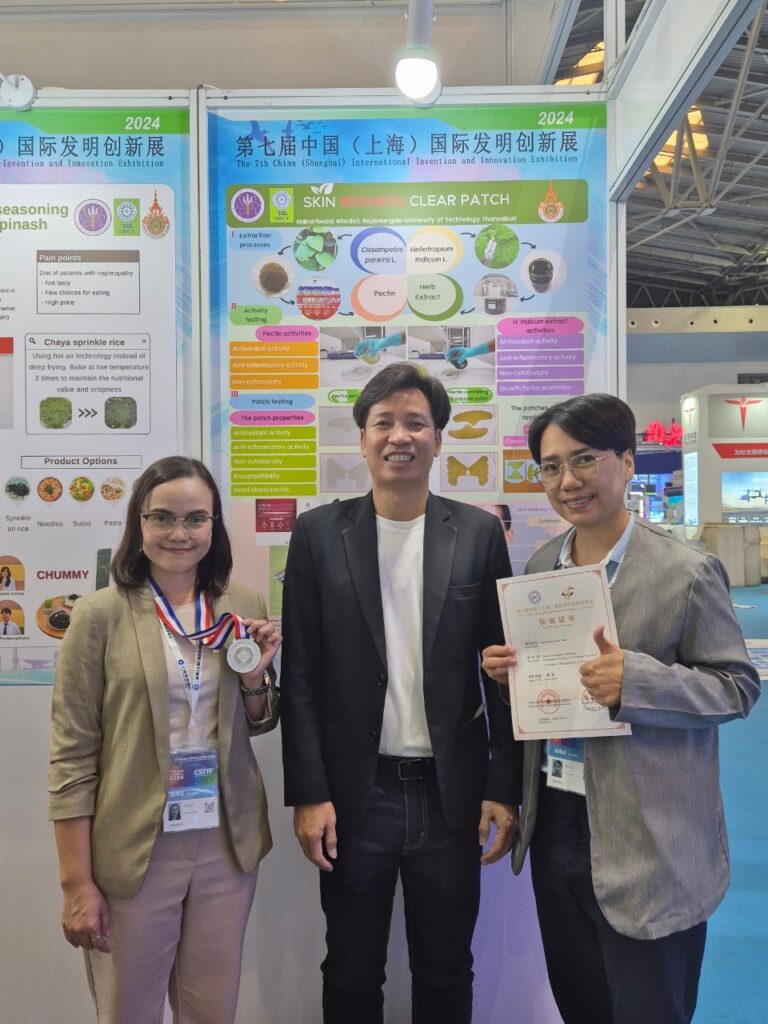 6. ผลงาน Skin Redness Clear Patch ได้รับรางวัล Silver Medal โดย ผศ. ณกันต์วลัย วิศิฎศรี และผศ. สุรัติวดี ทั่งมั่งมี คณะการแพทย์บูรณาการ นางสาวคณนาถ มหารงค์ และ นางสาวลภัสรดา พิศเพ็ง นักศึกษาคณะการแพทย์บูรณาการ
