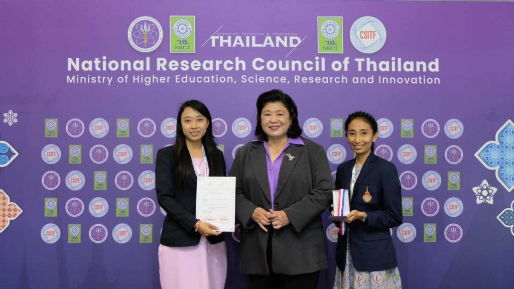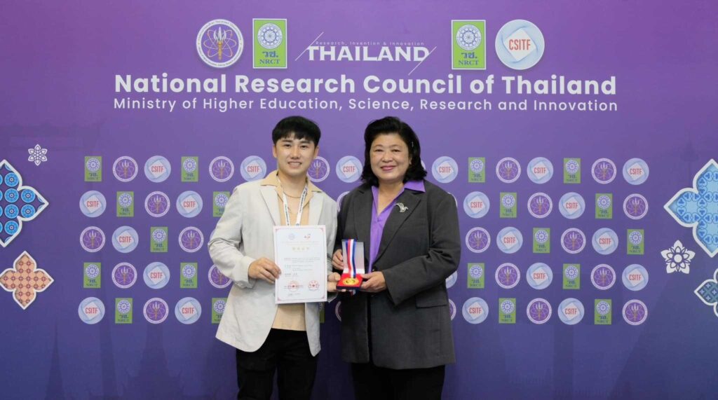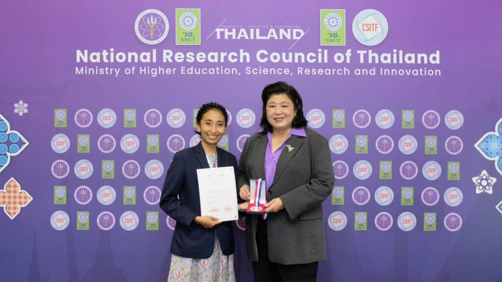 7. ผลงาน Eliminating odor innovation in protein powder from Black Soldier Fly larvae : The property improvement of alternative proteins in the future ได้รับรางวัล Silver Medal โดย ดร.สายฝน โพธิสุวรรณ คณะวิทยาศาสตร์และเทคโนโลยี