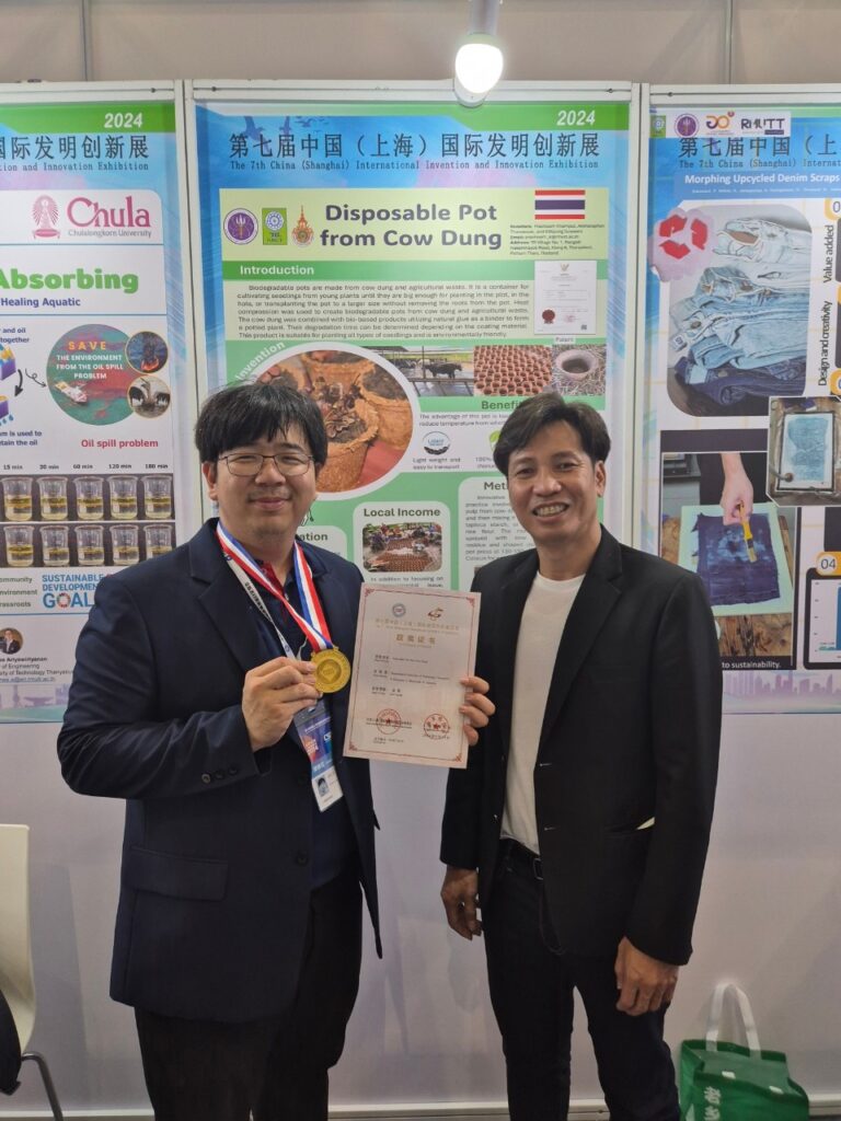 5. ผลงาน Disposable Pot from Cow Dung ได้รับรางวัล Gold Medal โดย ผศ. ดร.ประชุม คำพุฒ และ ว่าที่ร้อยเอก ผศ.ดร.กิตติพงษ์ สุวีโร คณะวิศวกรรมศาสตร์