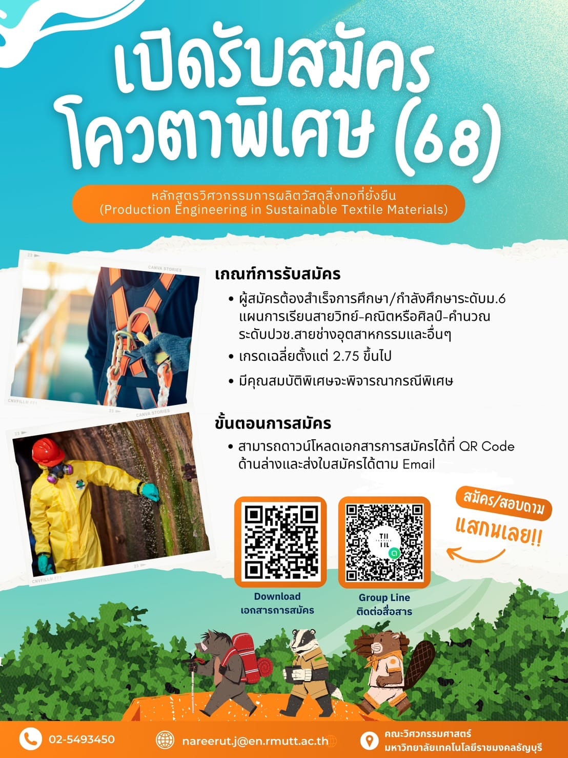 ผู้ที่สนใจสอบถามข้อมูลเพิ่มเติมได้ที่ 0-2549-3450 หรือที่เฟซบุ๊กแฟนเพจ Engineering RMUTT