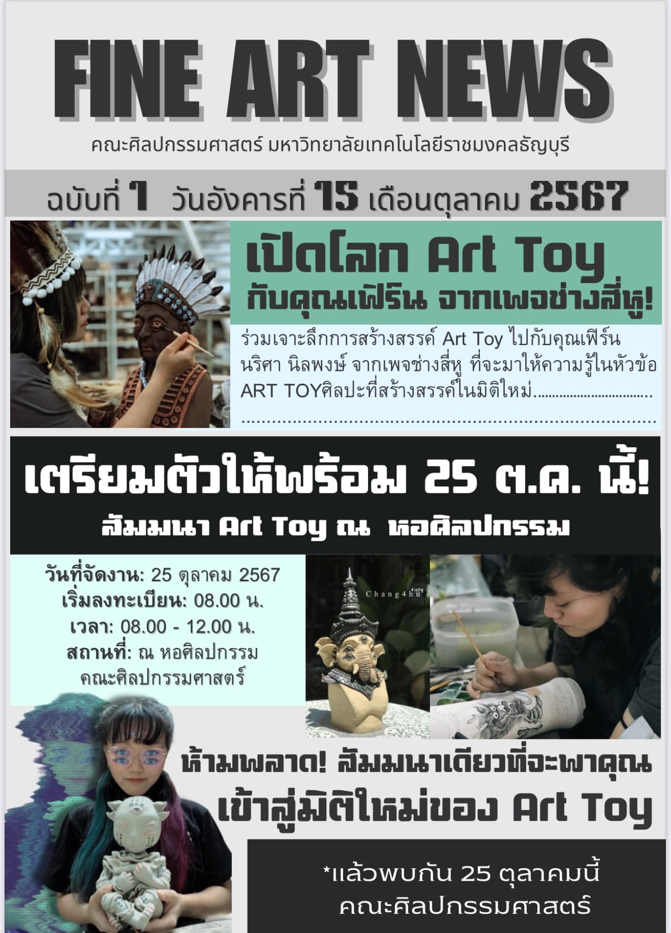 นักศึกษานวัตกรรมการออกแบบผลิตภัณฑ์ร่วมสมัย มทร.ธัญบุรี ชวนผู้ที่ชื่นชอบ Art Toy เข้าร่วมงานสัมมนาหัวข้อ “Art Toy ศิลปะสร้างสรรค์ในมิติใหม่” 25 ต.ค.นี้ Posted by radio895 Last Updated: October 22, 2024 นักศึกษาสาขาวิชานวัตกรรมการออกแบบผลิตภัณฑ์ร่วมสมัย ชั้นปีที่ 3 คณะศิลปกรรมศาสตร์ มหาวิทยาลัยเทคโนโลยีราชมงคลธัญบุรี ชวนผู้ที่ชื่นชอบ Art Toy เข้าร่วมงานสัมมนาในหัวข้อ “Art Toy ศิลปะสร้างสรรค์ในมิติใหม่” วันศุกร์ที่ 25 ตุลาคม 2567 เวลา 08.30-12.00 น. ณ หอศิลปกรรม คณะศิลปกรรมศาสตร์ มทร.ธัญบุรี จ.ปทุมธานี เปิดโลก Art Toy ร่วมเจาะลึกการสร้างสรรค์ Art Toy ไปกับคุณเฟิร์น นริศา นิลพงษ์ จากเพจช่าง 4 หู ผู้ที่สนใจเข้าร่วมงาน สอบถามข้อมูลเพิ่มเติมได้ที่ Facebook คณะศิลปกรรมศาสตร์ มหาวิทยาลัยเทคโนโลยีราชมงคลธัญบุรี . รายงานโดย อาทิตยา ปักกะทานัง popular posts ราชมงคลธัญบุรี ชวนร่วมชมและเชียร์ทัพนักกีฬาในการแข่งขันกีฬามหาวิทยาลัยแห่งประเทศไทย ครั้งที่ 51 รอบคัดเลือก เขตภาคกลาง “ธัญบุรีเกมส์” 16 – 20 พ.ย.นี้ FIN TALK [EP.113] ชีวิตติดแอปฯ กับ Embedded Finance : ใช้จ่ายง่าย แต่หนี้ร้ายกว่าเดิม มทร.ธัญบุรี เตรียมจัดพิธีพระราชทานปริญญาบัตร ครั้งที่ 39 ประจำปีการศึกษา 2567 วันที่ 12 พ.ย.นี้ สถานีวิทยุราชมงคลธัญบุรี เปิดรับสมัคร เจ้าหน้าที่ประชาสัมพันธ์ radio895 October 22, 2024