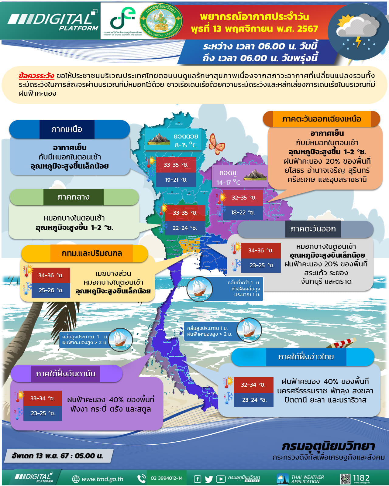 10.00 ข่าวราชมงคล // ศปช. เผยภาคใต้ต้องระวังฝนตกหนัก 3 วันนี้ ขณะที่เทศกาล “ลอยกระทง” คาดมีฝนเล็กน้อยทั้งทางอีสาน ตะวันออก