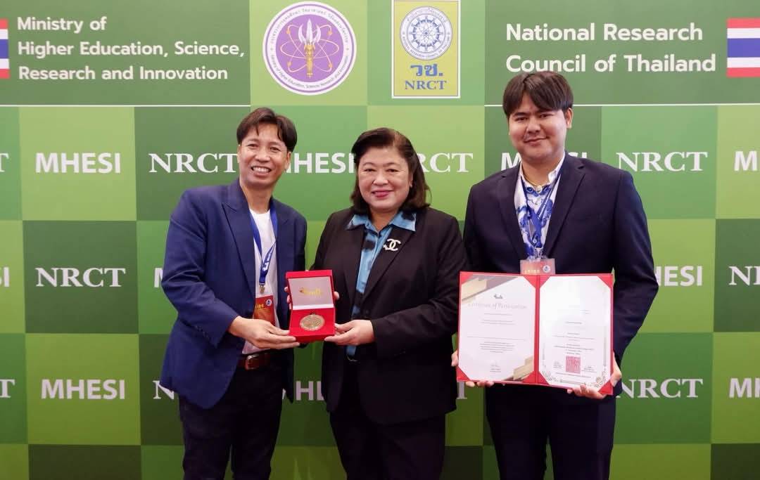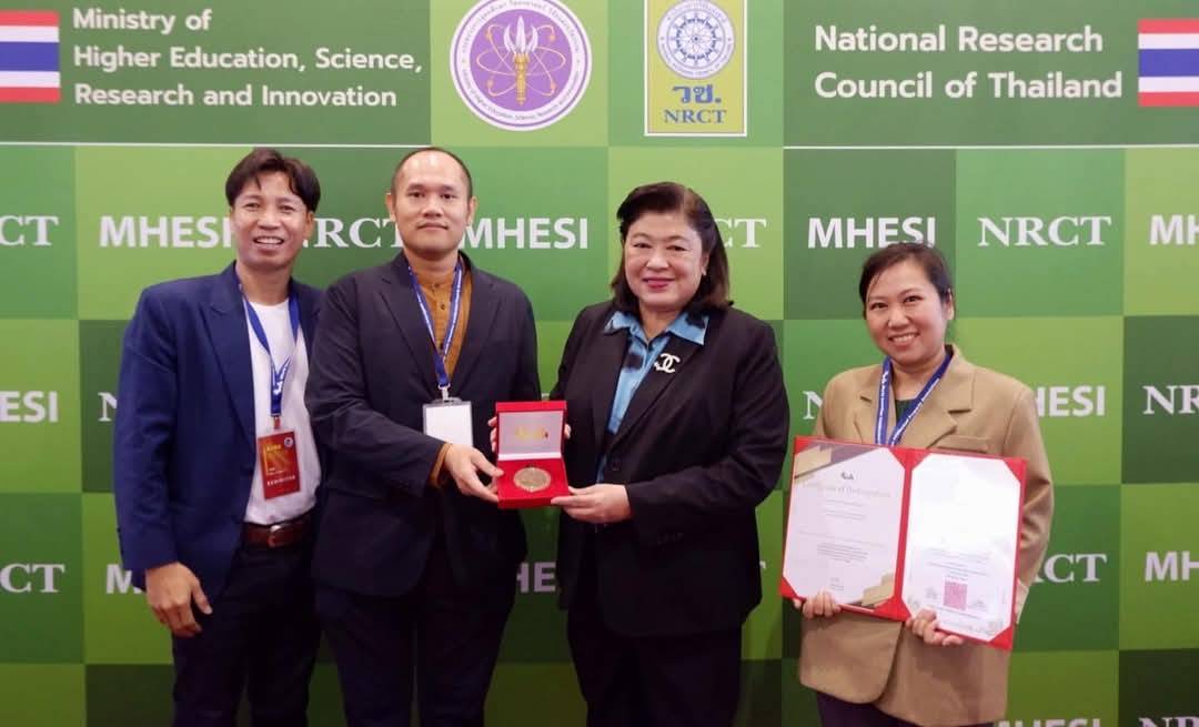 3.ผลงาน The value added of sacha inchi cake by development to sacha inchi butter โดย ดร.ปกรณ์ สุวรรณโสภณ, ดร.คุณากร ขัติศรี, นายธนาวงค์ ดำรงเดช และ ดร.วลีวรรณ แฉ่งประเสริฐ คณะวิทยาศาสตร์และเทคโนโลยี ได้รับรางวัล Gold Medal