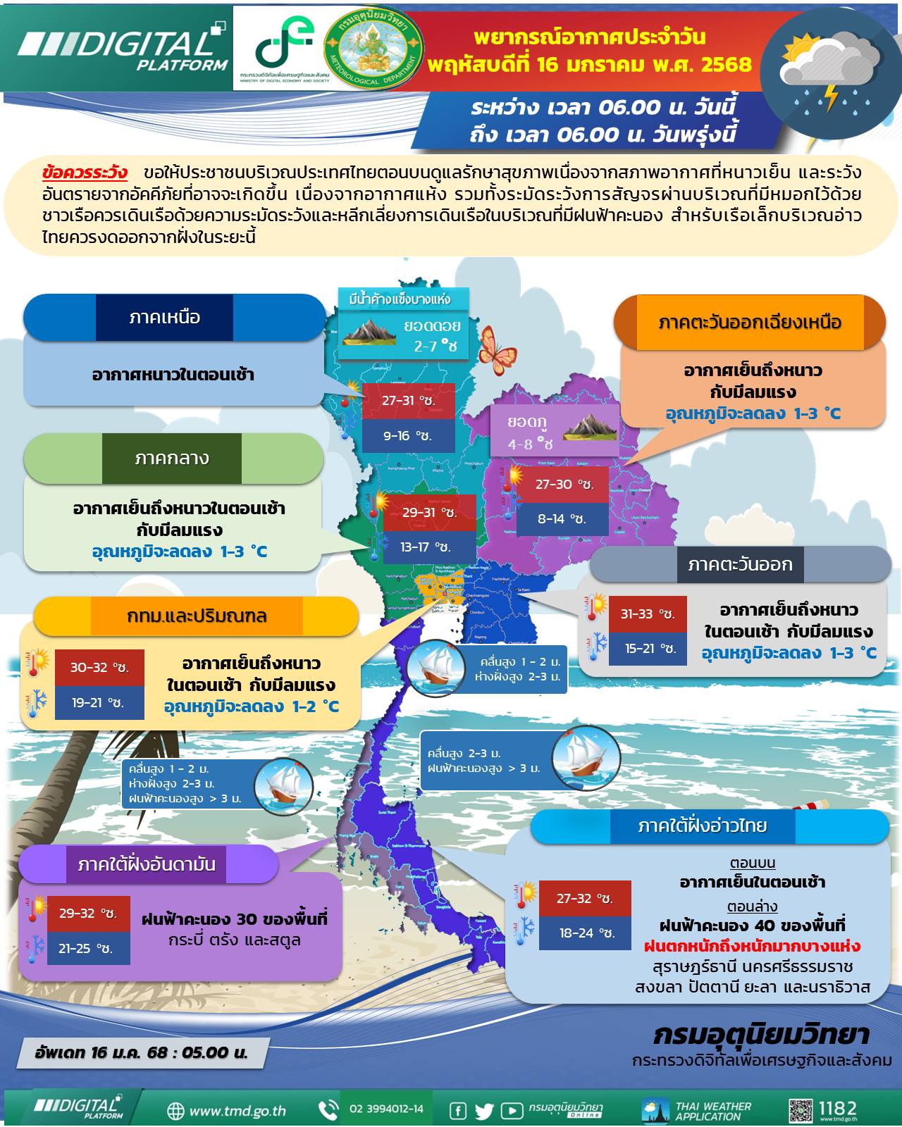 11.00 บวท. จับมือกรมฝนหลวงและการบินเกษตร ปฏิบัติการบินอากาศยาน 11 ลำโปรยน้ำแข็งแห้ง บรรเทาปัญหาฝุ่น PM 2.5 หลังผลดำเนินงาน ธ.ค.67 ได้ผลดี ฝุ่นลดลง คุณภาพอากาศดีขึ้น