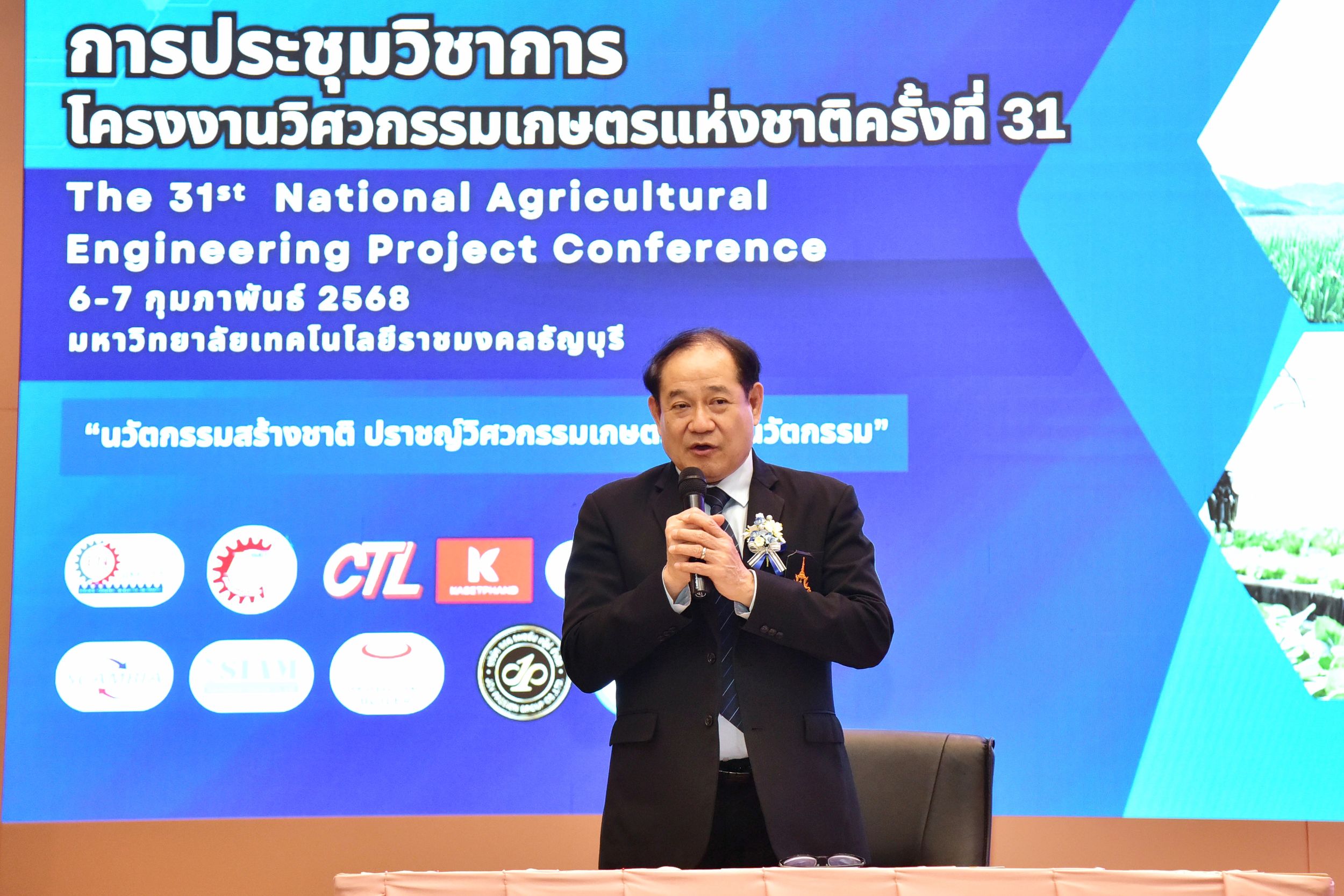 รศ.ดร.สมหมาย ผิวสอาด รักษาการในตำแหน่งอธิการบดี มทร.ธัญบุรี กล่าวว่า ภาคการเกษตรเป็นรากฐานสำคัญของเศรษฐกิจไทย ทั้งในด้านความมั่นคงทางอาหารและการส่งออก การนำเทคโนโลยีมาปรับใช้ เช่น เกษตรอัจฉริยะ โดรนเพาะปลูก และระบบจัดการน้ำอัตโนมัติ จะช่วยเพิ่มผลผลิต ลดต้นทุน และลดผลกระทบต่อสิ่งแวดล้อม การพัฒนาบุคลากรด้านวิศวกรรมเกษตรที่มีทักษะเฉพาะทาง เช่น การออกแบบเครื่องจักรกล ระบบอัตโนมัติ และการใช้เทคโนโลยีวิเคราะห์ข้อมูล เป็นสิ่งจำเป็นต่อการเสริมศักยภาพของประเทศ การประชุมครั้งนี้ถือเป็นเวทีสำคัญที่ช่วยขับเคลื่อนภาคการเกษตรของไทยให้เติบโตอย่างยั่งยืนและยังสอดคล้องกับเป้าหมายการพัฒนาที่ยั่งยืนของสหประชาชาติ เป็นโอกาสสำคัญในการเผยแพร่องค์ความรู้ด้านวิศวกรรมเกษตรสู่สาธารณะ