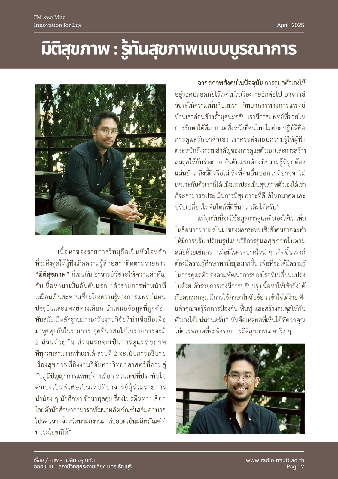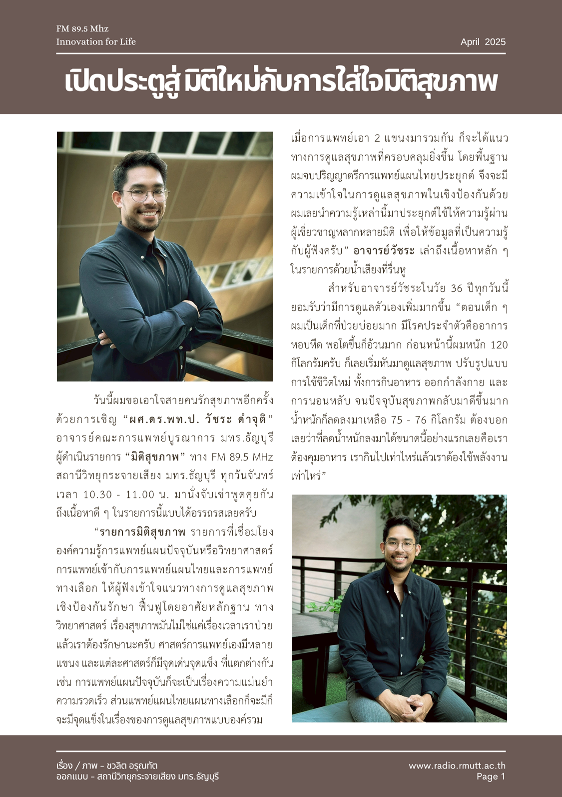 วันนี้ผมขอเอาใจสายคนรักสุขภาพอีกครั้งด้วยการเชิญ “ผศ.ดร.พท.ป. วัชระ ดำจุติ” อาจารย์คณะการแพทย์บูรณาการ มทร.ธัญบุรี ผู้ดำเนินรายการ “มิติสุขภาพ” ทาง FM 89.5 MHz สถานีวิทยุกระจายเสียง มทร.ธัญบุรี ทุกวันจันทร์ เวลา 10.30 – 11.00 น. มานั่งจับเข่าพูดคุยกันถึงเนื้อหาดี ๆ ในรายการนี้แบบได้อรรถรสเลยครับ