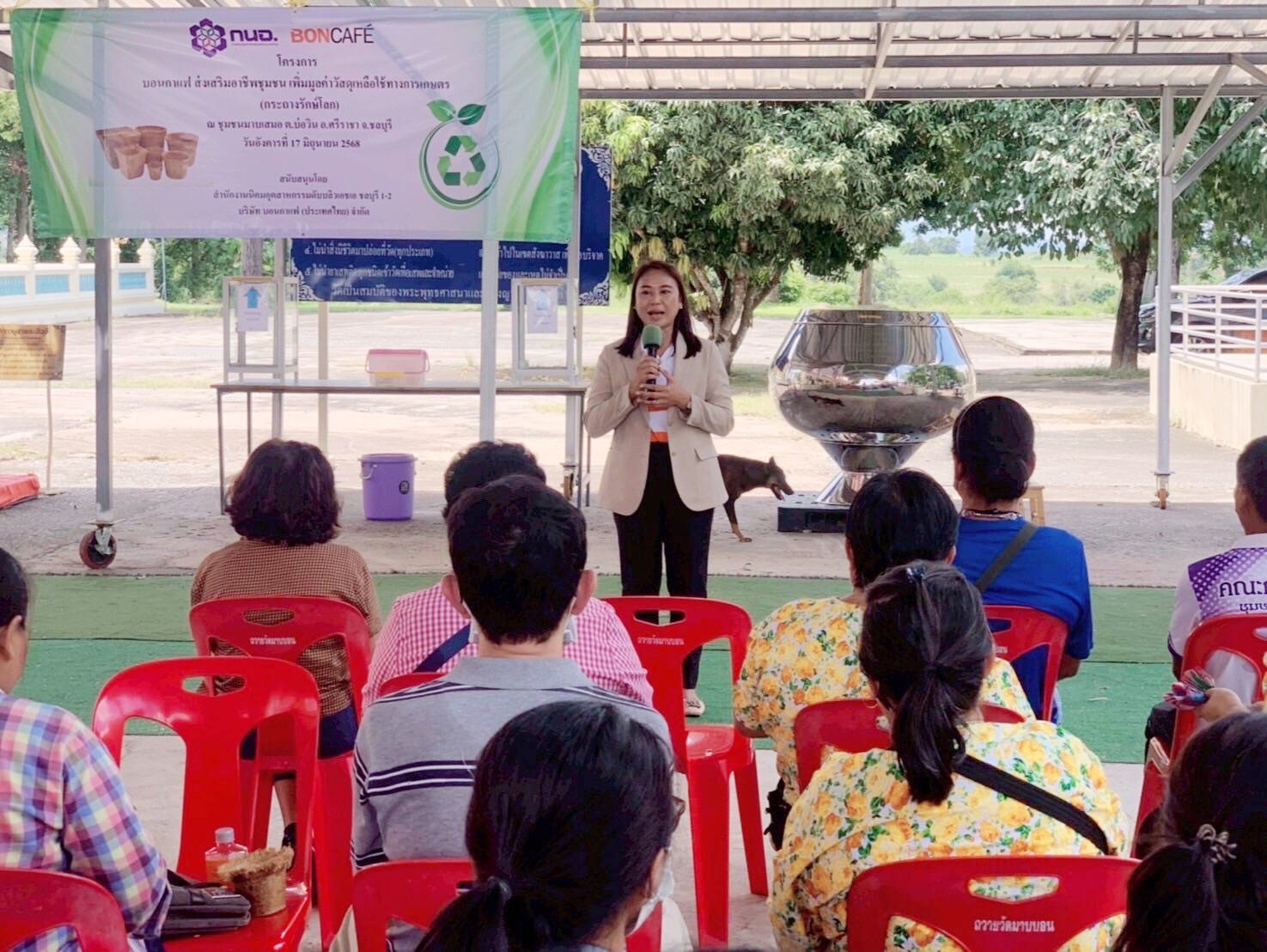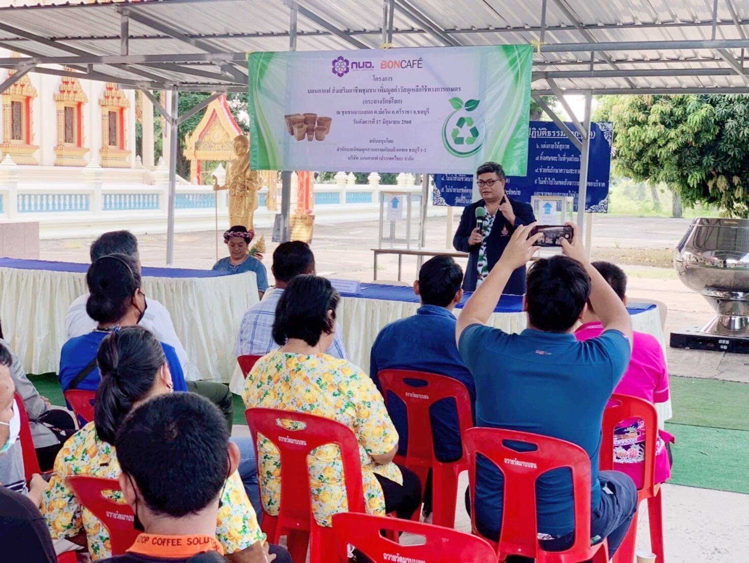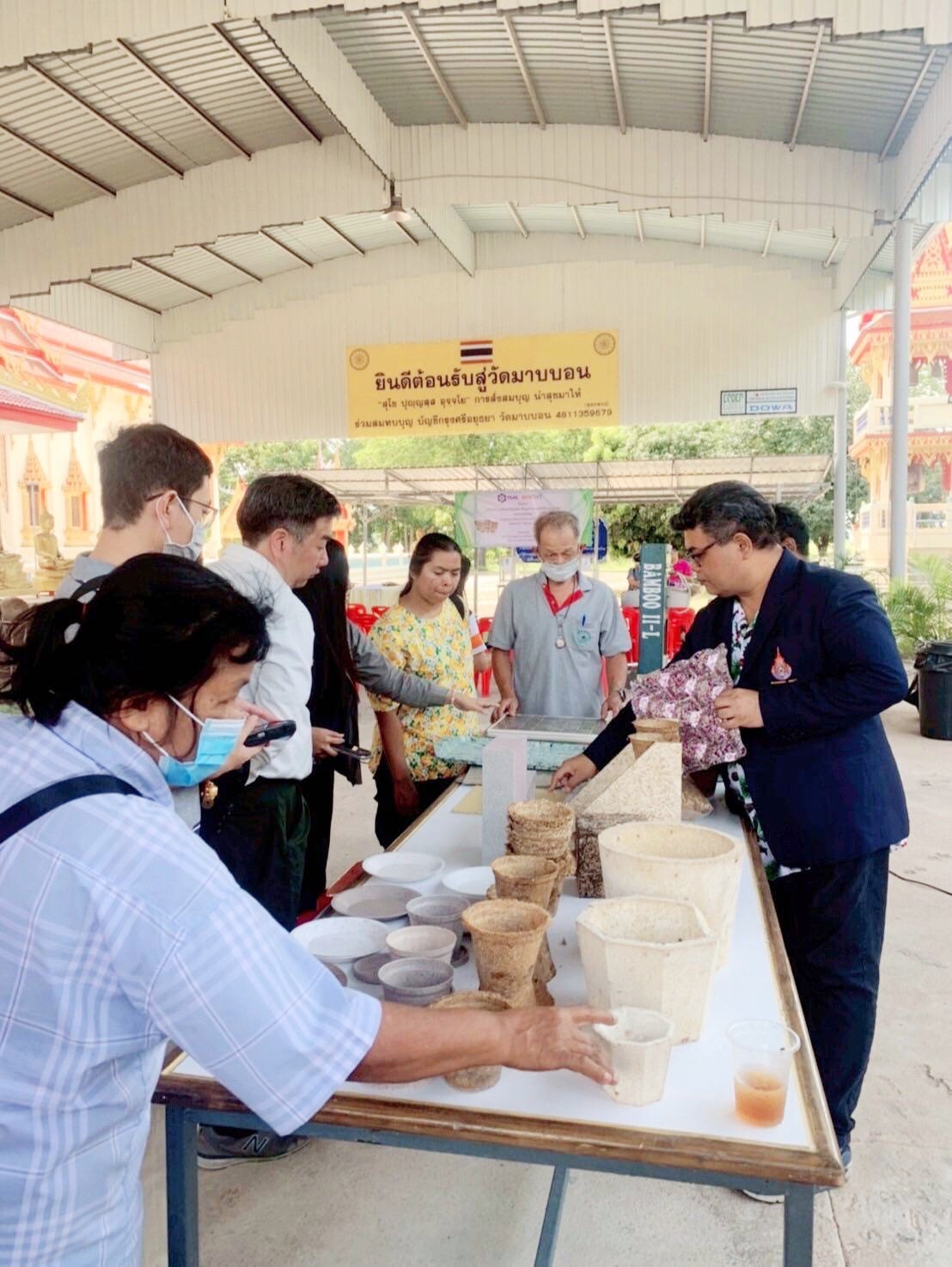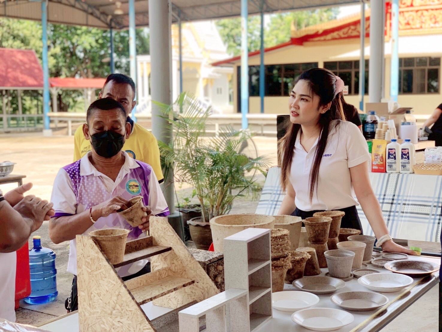 การอบรมโครงการนี้ หน่วยวิจัยวัสดุที่เป็นมิตรต่อสิ่งแวดล้อม ได้บรรยายในหัวข้อ “ความสำคัญของสภาวะโลกร้อนและส่งเสริมนโยบายลดการเผา ลดปริมาณการปล่อยก๊าซคาร์บอนและฝุ่นละออง PM 2.5 ในสิ่งแวดล้อม” และสาธิตการทำกระถางรักษ์โลกจากเยื่อกาแฟ โดยมีภาครัฐ และภาคเอกชนเข้าร่วมมากกว่า 10 หน่วยงาน มีชุมชนเข้าร่วมอีกมากกว่า 40 คน พร้อมนำไปต่อยอดในเชิงธุรกิจ