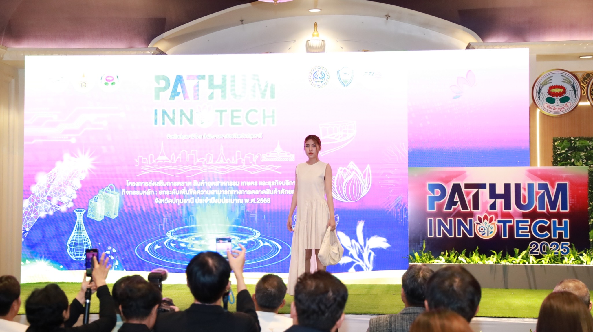 หนึ่งในไฮไลต์ของงานแถลงข่าว คือการเดินแฟชั่นโชว์โดยนักศึกษาคณะครุศาสตร์อุตสาหกรรม ซึ่งสวมใส่ชุดที่ได้รับการออกแบบและตัดเย็บโดยคณะเทคโนโลยีคหกรรมศาสตร์ ในชื่อชุด “นวัตกรรมเส้นใยจากผักตบชวา” แสดงถึงการผสานศาสตร์ด้านศิลปะการออกแบบเข้ากับแนวคิดนวัตกรรม และสร้างแรงบันดาลใจให้กับผู้ประกอบการรุ่นใหม่ โดยมี อาจารย์ชนัญชิดา ณะสม คณะศิลปกรรมศาสตร์ มทร.ธัญบุรี เป็นผู้ฝึกซ้อมเดินแบบ
