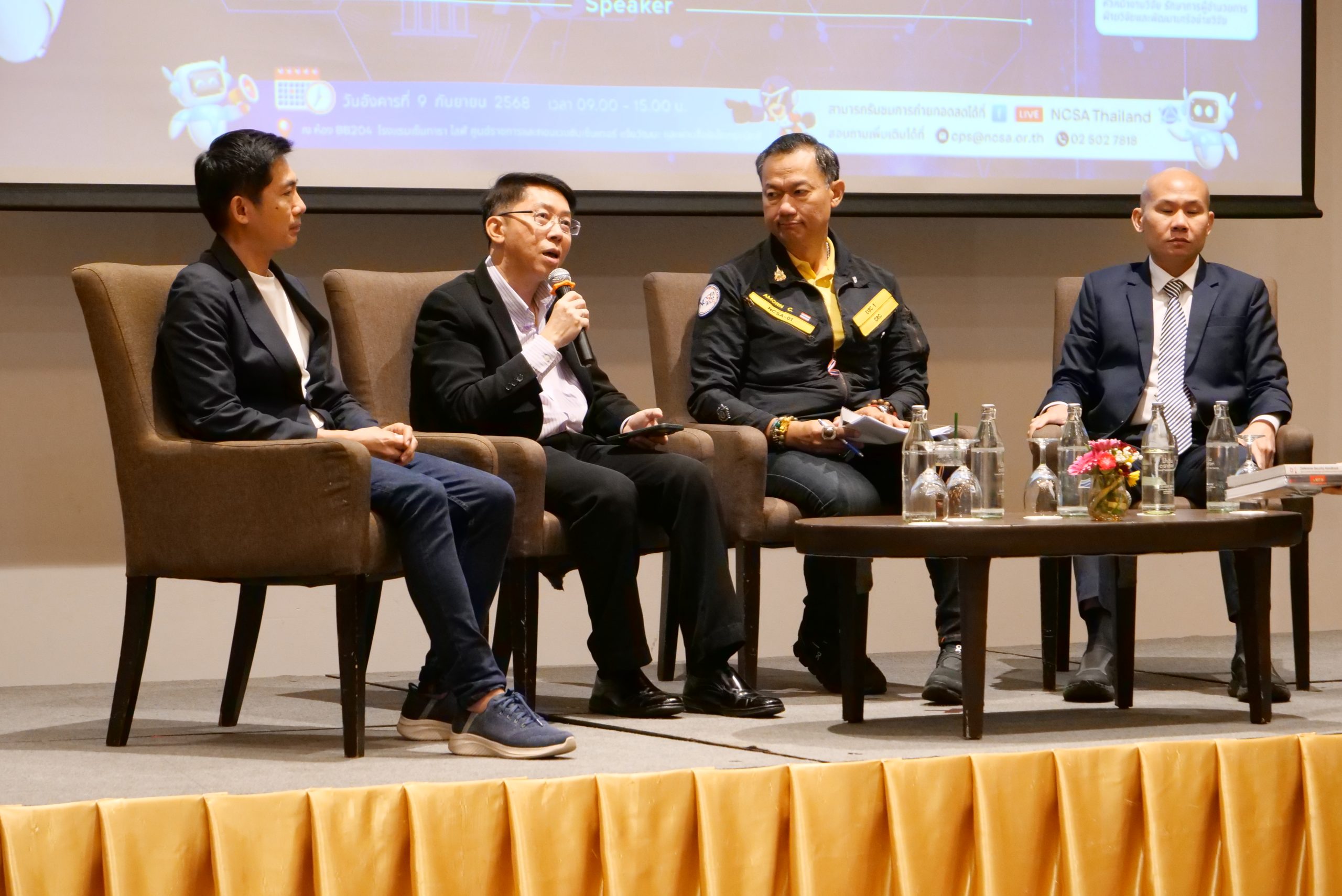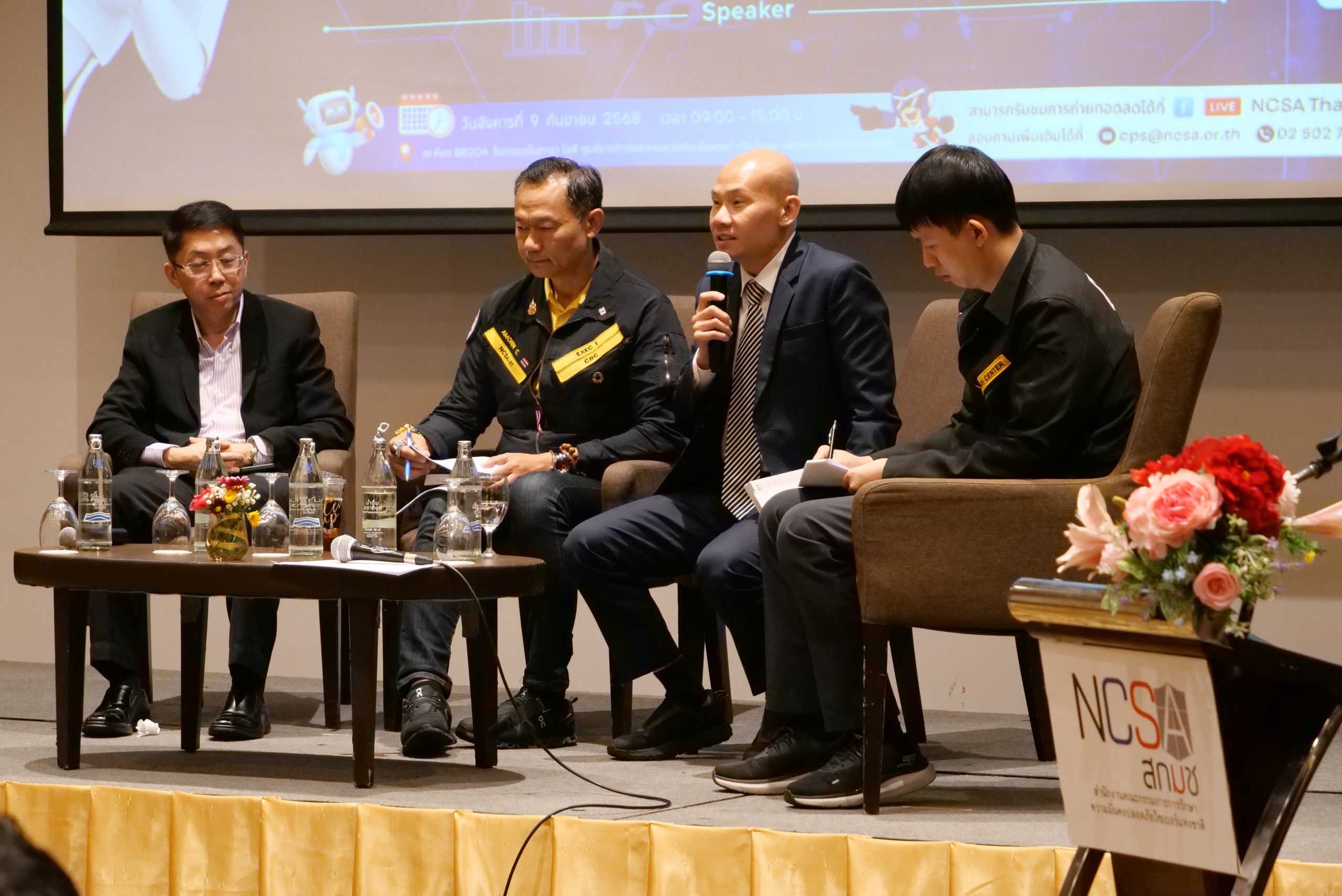 ภายในงานมีการเสวนาจากผู้ทรงคุณวุฒิด้าน AI และไซเบอร์ ทั้งภาครัฐ เอกชน และวิชาการ อาทิ คุณวิโรจน์ อัศวรังสี, ดร.มนต์ศักดิ์ โซ่เจริญธรรม และ ดร.ชาญวิทย์ บุญช่วย ที่สะท้อนมุมมองหลากหลาย ตั้งแต่การออกแบบ AI แบบ Secure by Design, การรับมือภัยคุกคาม, การกำกับดูแล ไปจนถึงการเชื่อมโยงกับมาตรฐานสากลและกฎหมายไทย