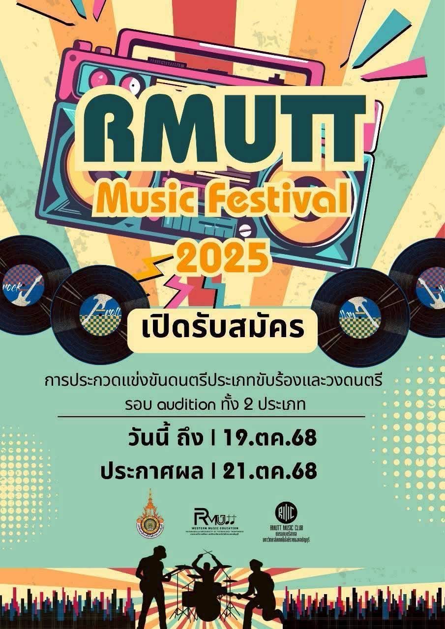 ชมรมดนตรีสากล มหาวิทยาลัยเทคโนโลยีราชมงคลธัญบุรี ชวนผู้ที่ชื่นชอบการร้องเพลงในการประกวดเวที RMUTT Music Festival 2025 ชิงเงินรางวัลรวมกว่า 15,000 บาท สมัครฟรี ไม่มีค่าใช้จ่าย โดยเปิดรับสมัครใน 2 ประเภท ดังนี้