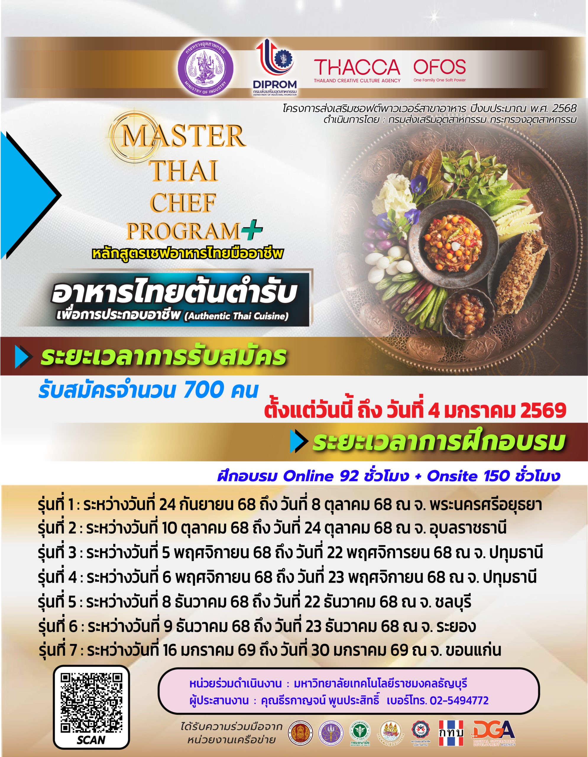 โครงการนี้จะจัดขึ้นระหว่างเดือนกันยายน 2568 ถึง กุมภาพันธ์ 2569 รับสมัครตั้งแต่วันนี้ ถึง วันที่ 4 มกราคม 2569 จำนวน 700 คน โดยมีการอบรมครอบคลุมทั้งภาคทฤษฎีและปฏิบัติ รวมกว่า 242 ชั่วโมง แบ่งเป็นการเรียนออนไลน์ 92 ชั่วโมง ผ่านระบบ OFOS และ DIPROM E-Learning และการฝึกอบรมภาคสนาม 150 ชั่วโมง เพื่อพัฒนาทักษะอาชีพและความเชี่ยวชาญที่สามารถนำไปใช้ได้จริง