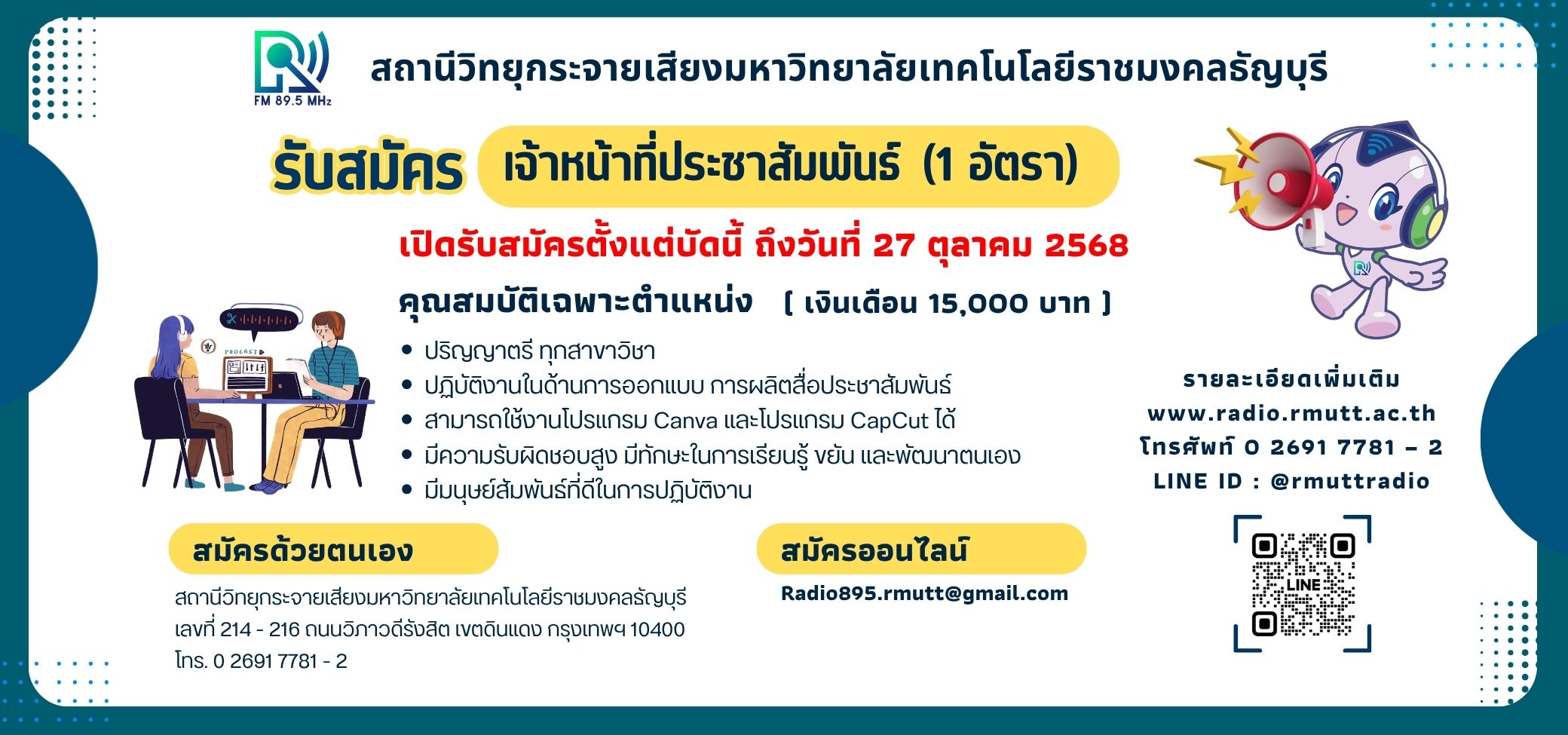 สมัครได้ ถึงวันที่ 27 ตุลาคม 2568
