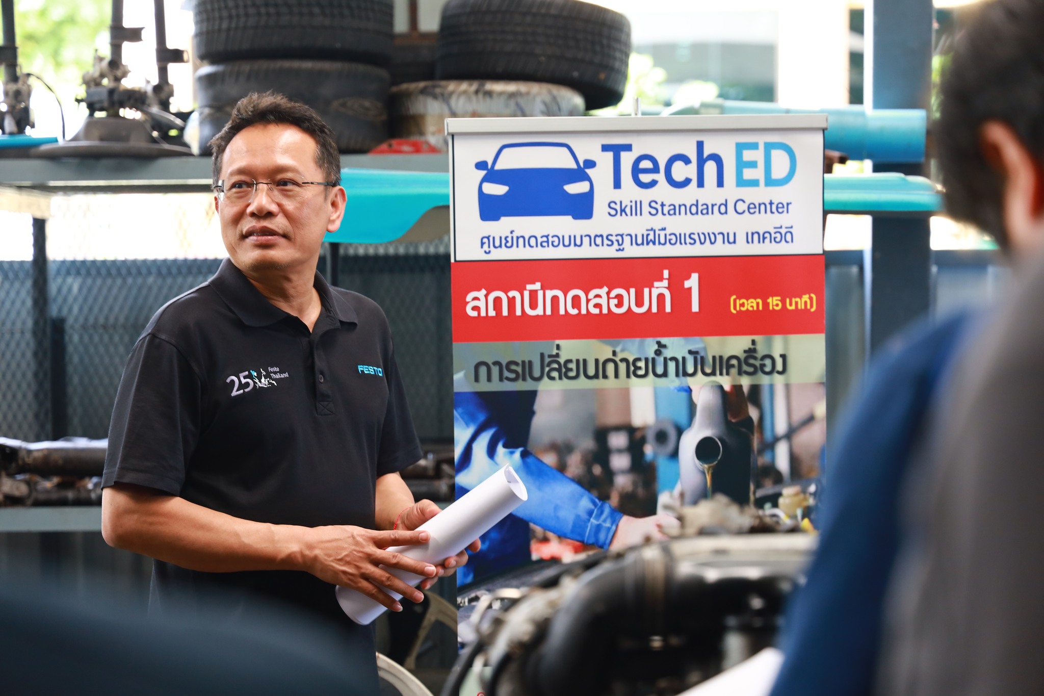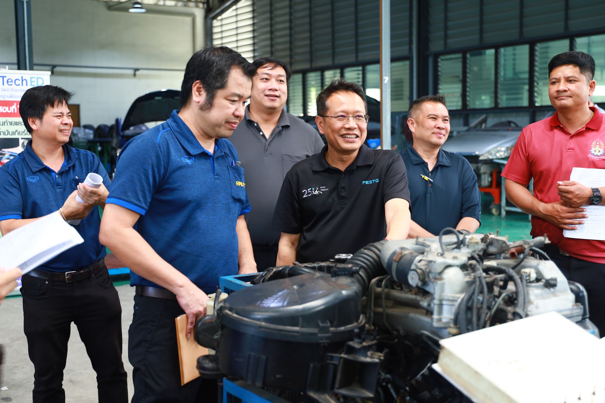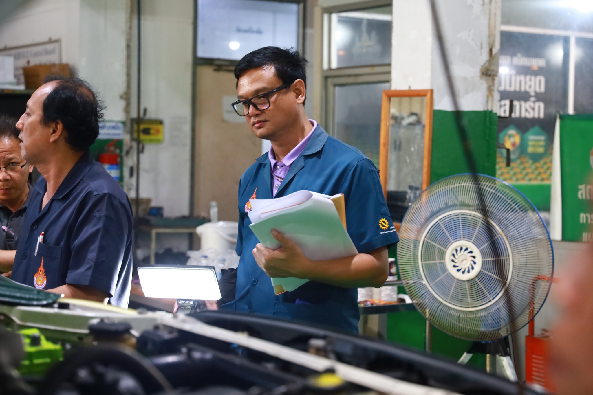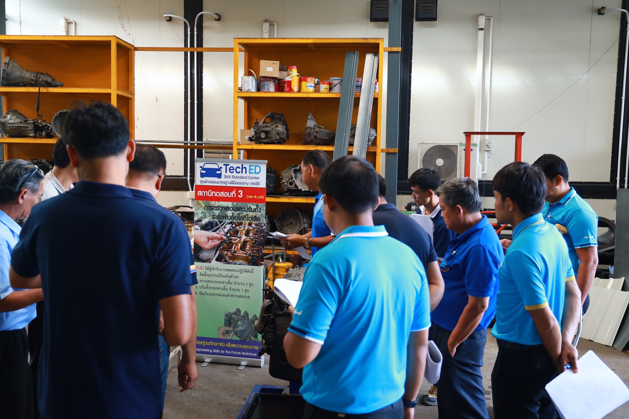 นอกจากนี้ ผู้เข้าร่วมโครงการยังได้เข้ารับการ ทดสอบประเมินสมรรถนะทั้งภาคทฤษฎีและภาคปฏิบัติ เพื่อวัดผลการเรียนรู้และประเมินความสามารถในการประยุกต์ใช้ความรู้ด้านเทคโนโลยียานยนต์ไฟฟ้าอย่างรอบด้าน อันเป็นแนวทางในการพัฒนามาตรฐานกำลังคนที่สอดคล้องกับความต้องการของอุตสาหกรรมยานยนต์สมัยใหม่