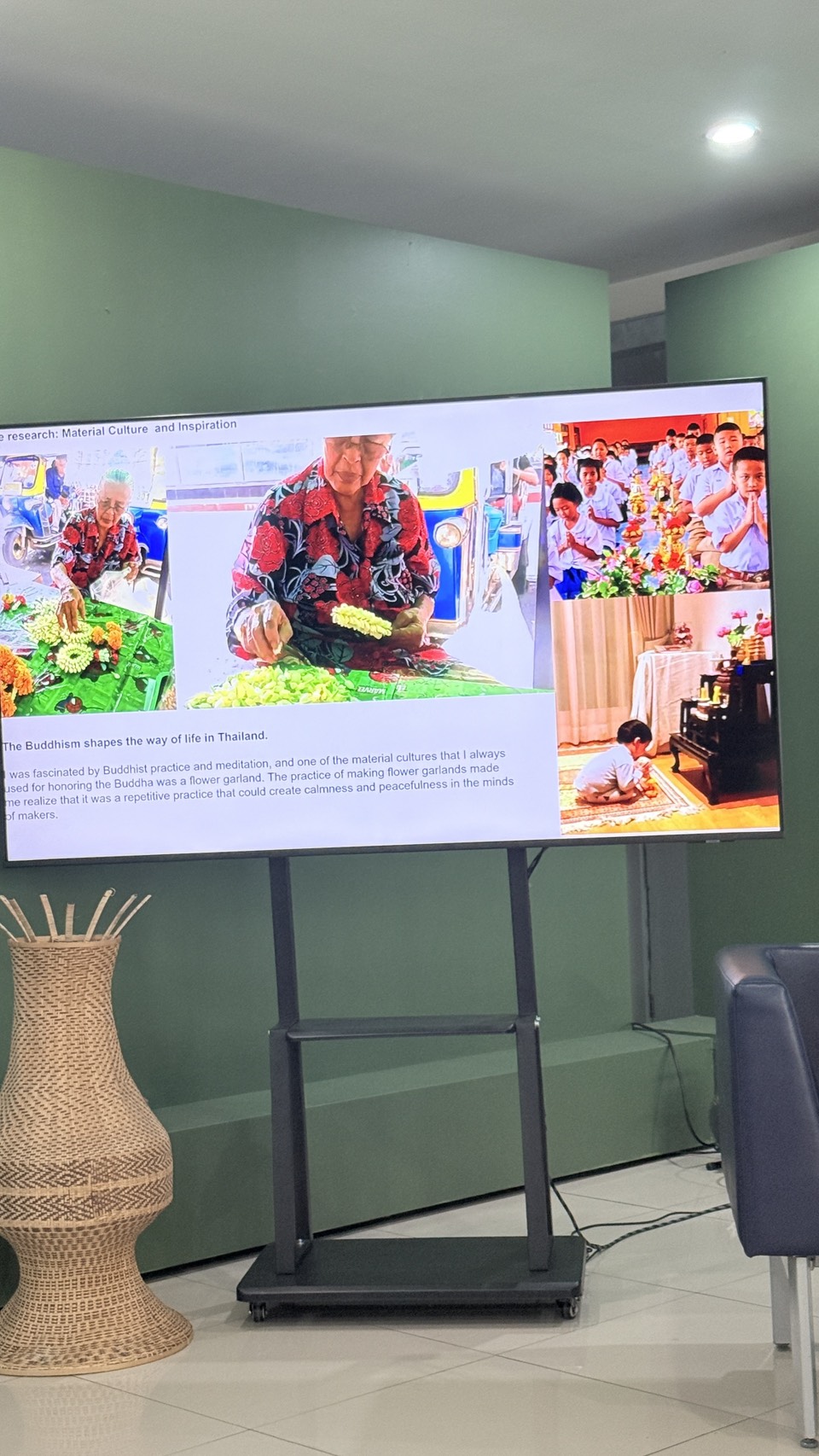 “Art, Craft & Fashion: เส้นทางจากแรงบันดาลใจสู่การสร้างตัวตนและอาชีพที่ยั่งยืน” เป็นส่วนหนึ่งในรายวิชาสัมมนาวิเคราะห์นวัตกรรมการออกแบบผลิตภัณฑ์ร่วมสมัย โดยมี อาจารย์ชนัญชิดา ณะสม อาจารย์ผู้รับผิดชอบรายวิชา เพื่อเปิดโอกาสให้นักศึกษาได้เรียนรู้แนวคิดและกระบวนการสร้างสรรค์ผลงานศิลปะ งานหัตถศิลป์ แฟชั่นร่วมสมัยอย่างมีระบบ รวมถึงการเชื่อมโยงองค์ความรู้ทางศิลปะและวัฒนธรรมเข้ากับนวัตกรรม การออกแบบผลิตภัณฑ์ที่ตอบสนองต่อสังคม เศรษฐกิจสร้างสรรค์ และความยั่งยืนในอนาคต