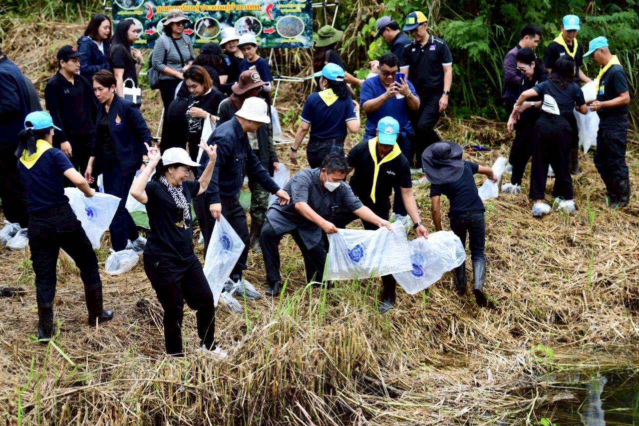 สำหรับการลงพื้นที่แปลง 905 อ.ไทรโยค จ.กาญจนบุรี มหาวิทยาลัยได้ร่วมใจปลูกต้นไม้มงคล ประกอบด้วย นนทรี 50 ต้น หว้า 30 ต้น ประดู่ 20 ต้น และปล่อยพันธุ์สัตว์น้ำลงสู่แหล่งน้ำธรรมชาติ ซึ่งพื้นที่แห่งนี้เป็นพื้นที่ที่มีความเหมาะสมทางระบบนิเวศและมีศักยภาพในการอนุรักษ์และขยายพันธุ์พืชหายาก อีกทั้งยังเป็นพื้นที่สาธารณะที่สามารถ พัฒนาเป็นแหล่งเรียนรู้ด้านทรัพยากรธรรมชาติและการอนุรักษ์พันธุกรรมพืชให้กับประชาชนและเยาวชนในท้องถิ่นได้อย่างยั่งยืน