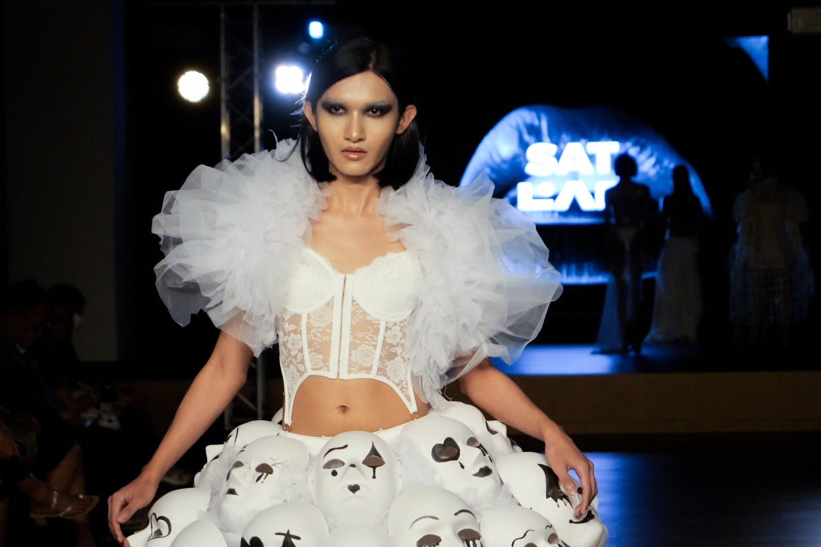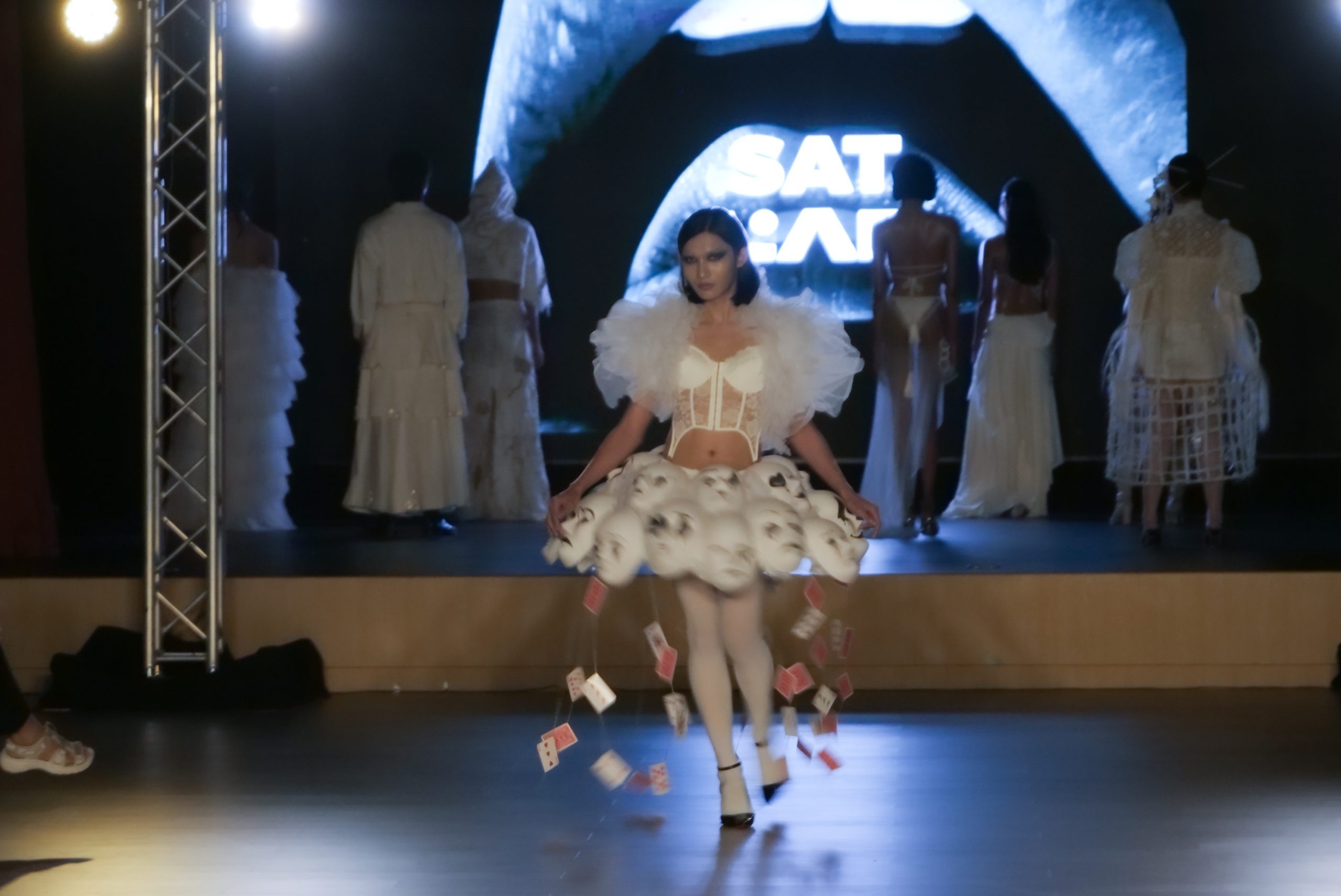 สำหรับการจัดงานแฟชั่นโชว์ “SATLAB – FASHION EXPERIMENT by 1st Year Student” เป็นส่วนหนึ่งของการบูรณาการในรายวิชาการตัดเย็บพื้นฐาน รายวิชาสุนทรียศาสตร์ และรายวิชาผ้าและเส้นใย โดยมี ผู้ช่วยศาสตราจารย์ ดร.สมพร ภูริโชติธรรม และอาจารย์ชนัญชิดา ณะสม เป็นอาจารย์ผู้รับผิดชอบรายวิชา มุ่งเน้นให้นักศึกษาได้เรียนรู้จากการ “ลงมือทำจริง” มีแรงบันดาลใจในการใช้ความคิด ความพยายาม จินตนาการ มาสร้างสรรค์ผลงานที่สะท้อนตัวตนของตนเอง เรียนรู้จากกระบวนการจริง แสดงศักยภาพของนักศึกษารุ่นใหม่ ที่กล้าคิด กล้าทดลอง กล้าแสดงออก ผ่านศิลปะแฟชั่นในมิติที่แตกต่าง และหลากหลาย ซึ่งถือเป็นหัวใจสำคัญของการเรียนรู้ในสายศิลปกรรมศาสตร์ มีจิตวิญญาณของศิลปิน และมีความรับผิดชอบต่อสังคมในอนาคตต่อไป