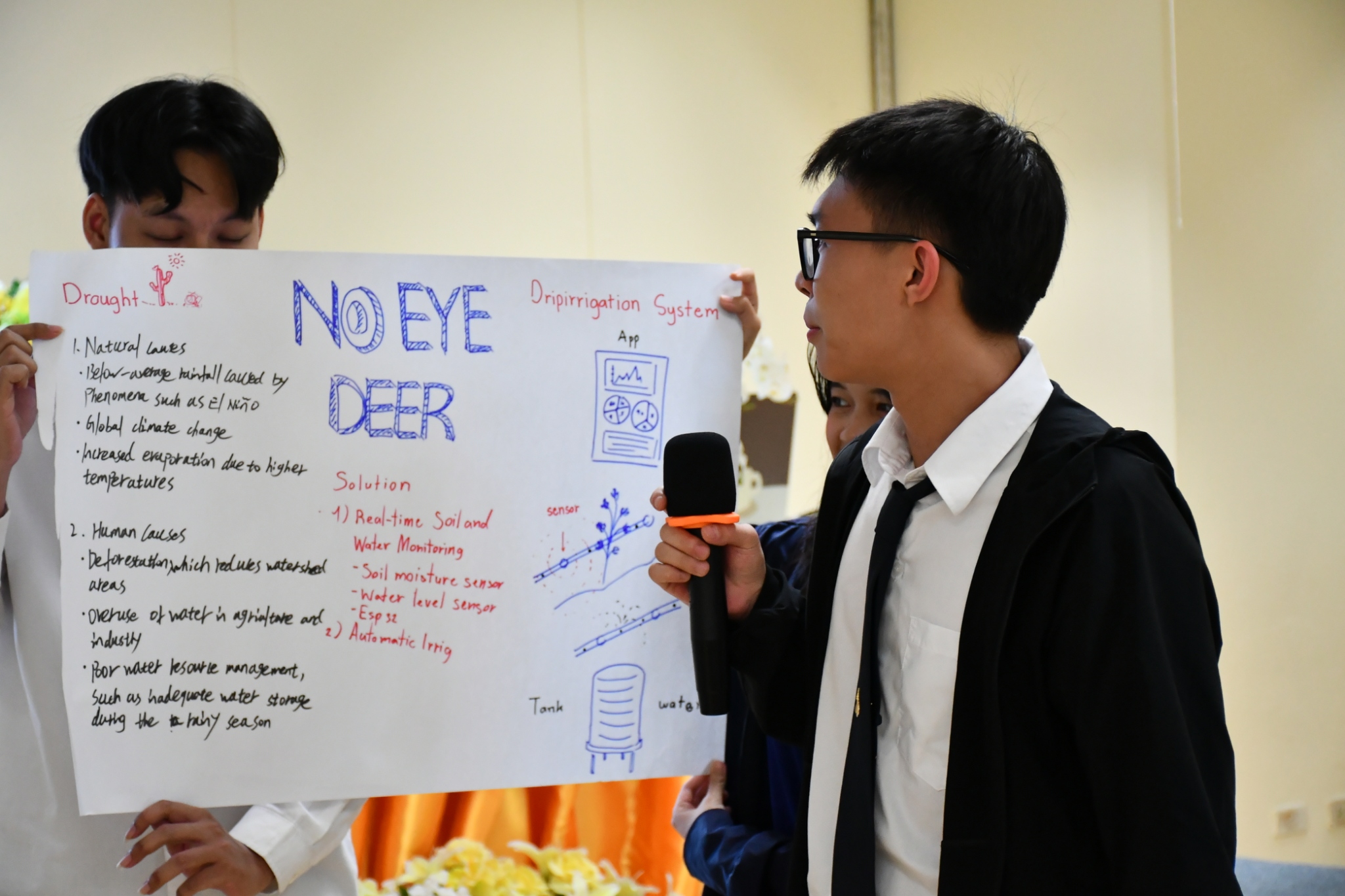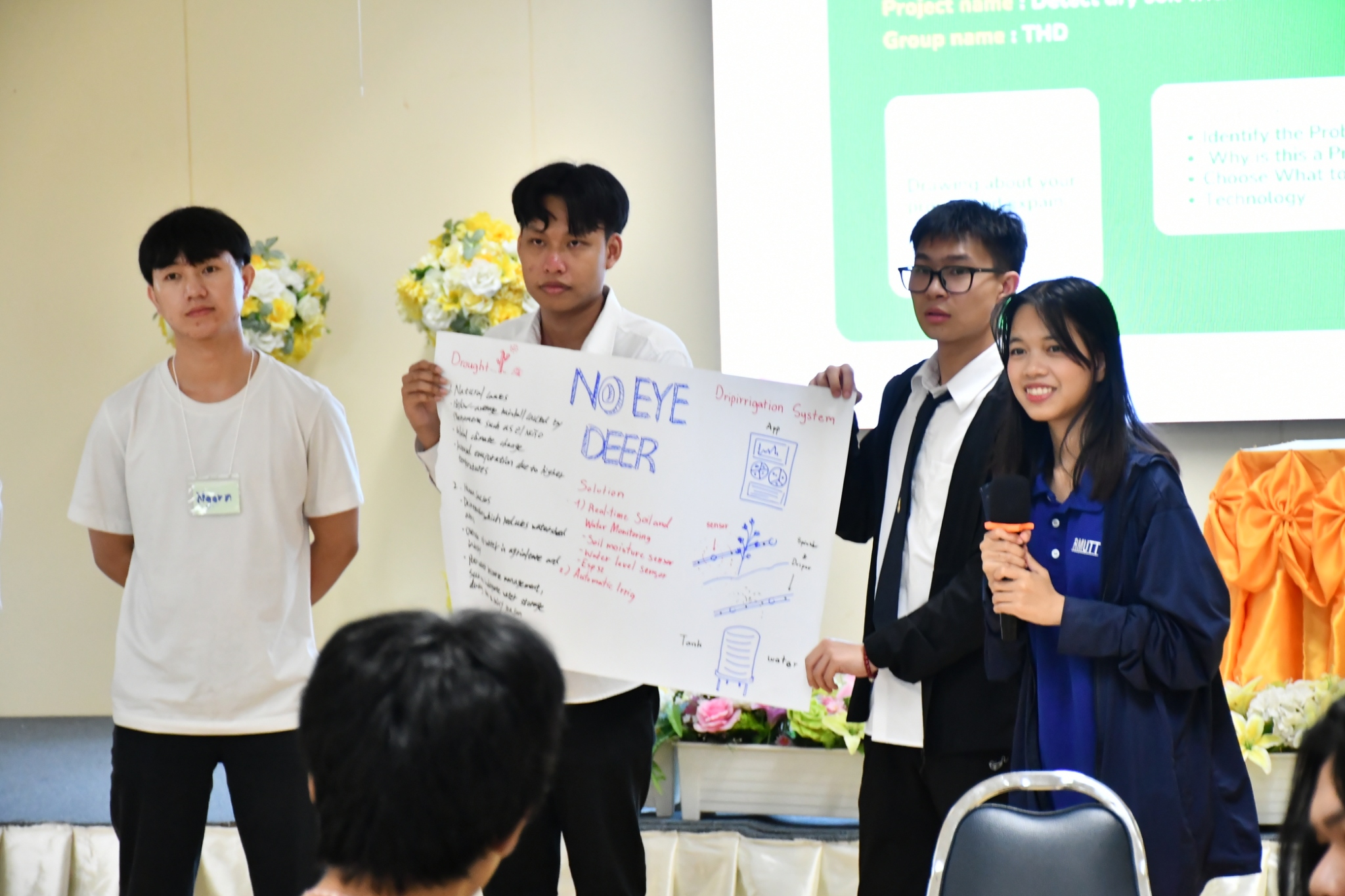 กิจกรรมนี้มุ่งส่งเสริมการเรียนรู้ด้านเทคโนโลยีเกษตรสมัยใหม่ (Smart Agriculture) และพัฒนา ทักษะการสื่อสารภาษาอังกฤษเชิงวิทยาศาสตร์และเทคโนโลยี เพื่อให้เยาวชนสามารถแลกเปลี่ยนองค์ความรู้ในระดับสากล โดยผู้เข้าร่วมกิจกรรมได้เรียนรู้การทำงานของ ระบบสมองกลฝังตัว (Embedded Systems) สำหรับควบคุมและติดตามปัจจัยสำคัญของเกษตรแนวตั้ง เช่น ความชื้น อุณหภูมิ และปริมาณแสง พร้อมฝึกการสื่อสารภาษาอังกฤษเชิงเทคนิค (Technical English) ผ่านกิจกรรมกลุ่ม เกม และการจำลองสถานการณ์ Pitching & Presentation Simulation ที่เต็มไปด้วยความสนุก ความคิดสร้างสรรค์ และการมีส่วนร่วมของทุกคน ซึ่งไม่เพียงช่วยให้ยุวชนอาสาเข้าใจเทคโนโลยีเชิงประยุกต์อย่างเป็นรูปธรรม แต่ยังเป็นเวทีพัฒนา Soft Skills ด้านการสื่อสาร การทำงานเป็นทีม และการใช้ภาษาอังกฤษในบริบทธุรกิจและชุมชน 🤝 ซึ่งสอดคล้องกับเป้าหมายของโครงการในการสร้าง “เยาวชนต้นแบบด้านเทคโนโลยีและนวัตกรรมเพื่อสังคมเมืองอย่างยั่งยืน”