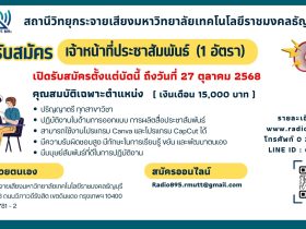 ประกาศรายชื่อผู้มีสิทธิเข้ารับการสอบ เจ้าหน้าที่ประชาสัมพันธ์ Posted by radio895 Last Updated: November 24, 2025 download เอกสารเจ้าหน้าที่ประชาสัมพันธ์ popular posts ราชมงคลธัญบุรี ชวนร่วมชมและเชียร์ทัพนักกีฬาในการแข่งขันกีฬามหาวิทยาลัยแห่งประเทศไทย ครั้งที่ 51 รอบคัดเลือก เขตภาคกลาง “ธัญบุรีเกมส์” 16 – 20 พ.ย.นี้ สถานีวิทยุราชมงคลธัญบุรี เปิดรับสมัคร เจ้าหน้าที่ประชาสัมพันธ์ FIN TALK [EP.113] ชีวิตติดแอปฯ กับ Embedded Finance : ใช้จ่ายง่าย แต่หนี้ร้ายกว่าเดิม เพลินภาษานานาสาระ l ธรรมเนียมการฝังรก radio895 November 24, 2025