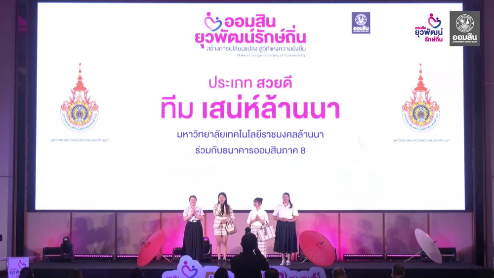 ทีม“เสน่ห์ล้านนา” ประกอบด้วย นางสาวน๊อต ยามะ นางสาวมน อุเฒ่า นางสาวกนกวรรณ ลุงปาน และ นางสาวมณฑาทิพย์ ทองศรี นักศึกษาชั้นปีที่ 4 คณะบริหารธุรกิจและศิลปศาสตร์ ได้นำเสนอผลงาน “ผ้าทอไทเขิน” โดยลงพื้นที่ทำงานร่วมกับ ธนาคารออมสินภาค 8 และ กลุ่มวิถีหัตถศิลป์ไทเขิน บ้านสันก้างปลา อำเภอสันกำแพง จังหวัดเชียงใหม่ พลิกโฉมผ้าทอมือธรรมดาให้กลายเป็น ผ้าทอมือสีธรรมชาติ ดีไซน์ร่วมสมัย สวยงามและรักษ์โลก ตอบโจทย์ไลฟ์สไตล์คนรุ่นใหม่ได้อย่างลงตัว เป็นการร่วมกันพัฒนาผลิตภัณฑ์แฟชั่น จากผ้าทอไทเขิน ทั้งเสื้อผ้า กระเป๋า และเครื่องประดับ โดยได้รับความสนใจจากคณะกรรมการและผู้เข้าร่วมงาน ที่ชื่นชมในความคิดสร้างสรรค์ที่ผสมผสานภูมิปัญญาดั้งเดิม ภายใต้การดูแลควบคุมทีมของอาจารย์ชวัญญา สุวรรณเสรีรักษ์ ซึ่งทีมเสน่ห์ล้านนาเป็น 1 ใน 12 ทีมสุดท้าย ที่ผ่านเข้ารอบ จาก 342 ทีมทั่วประเทศ