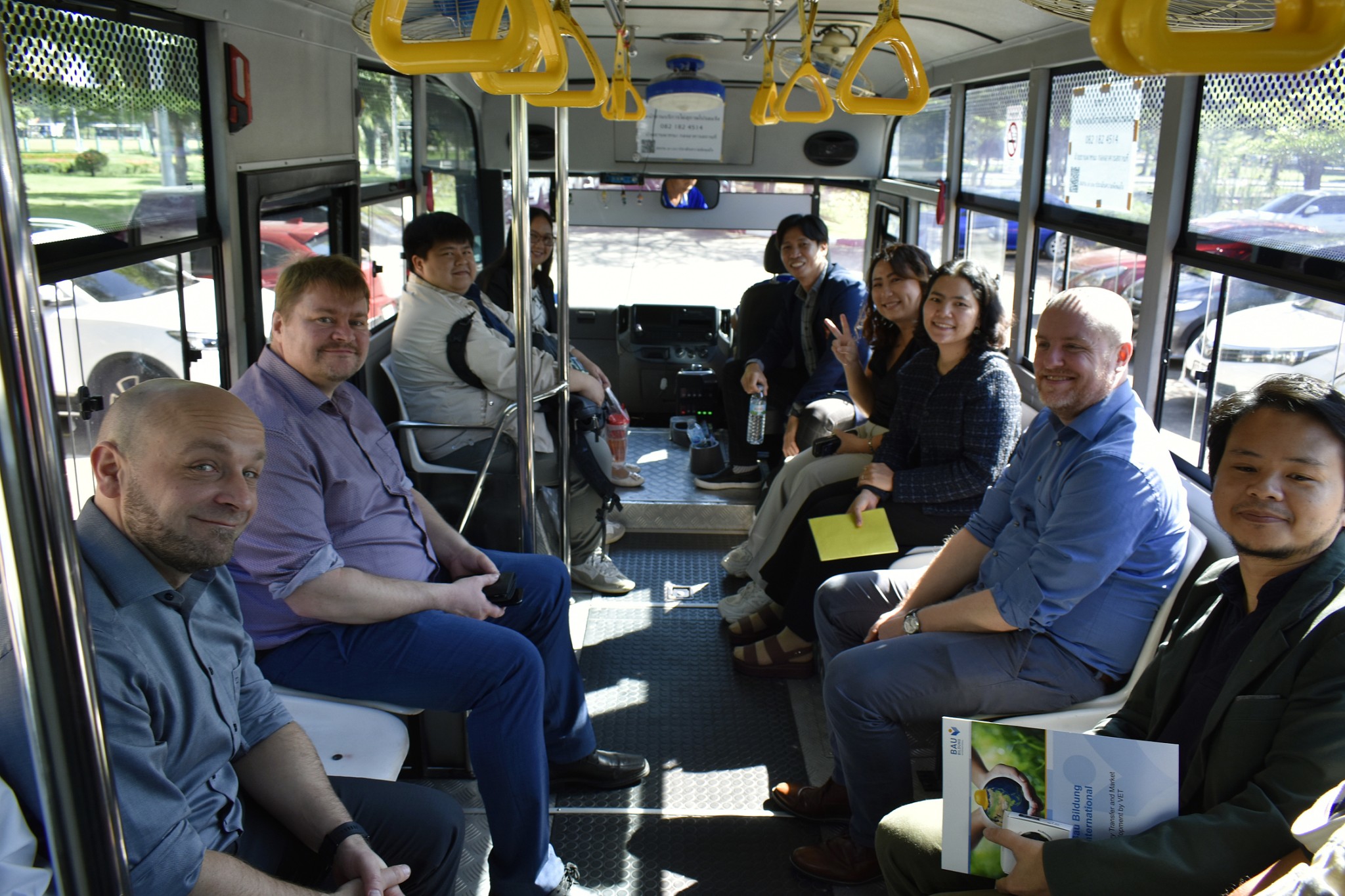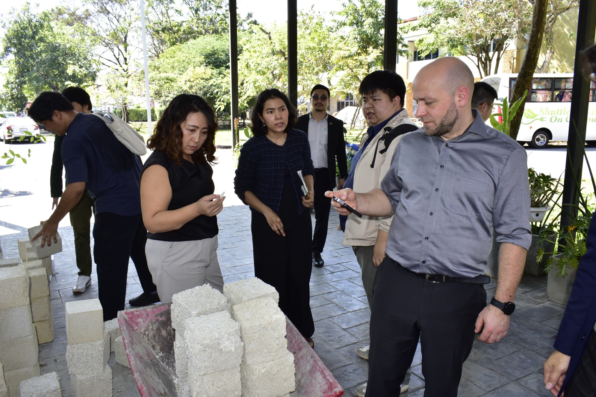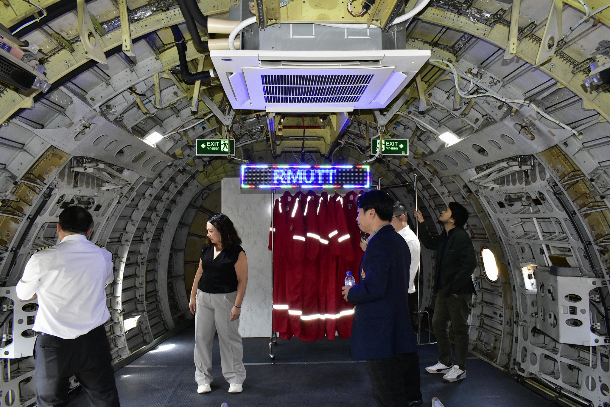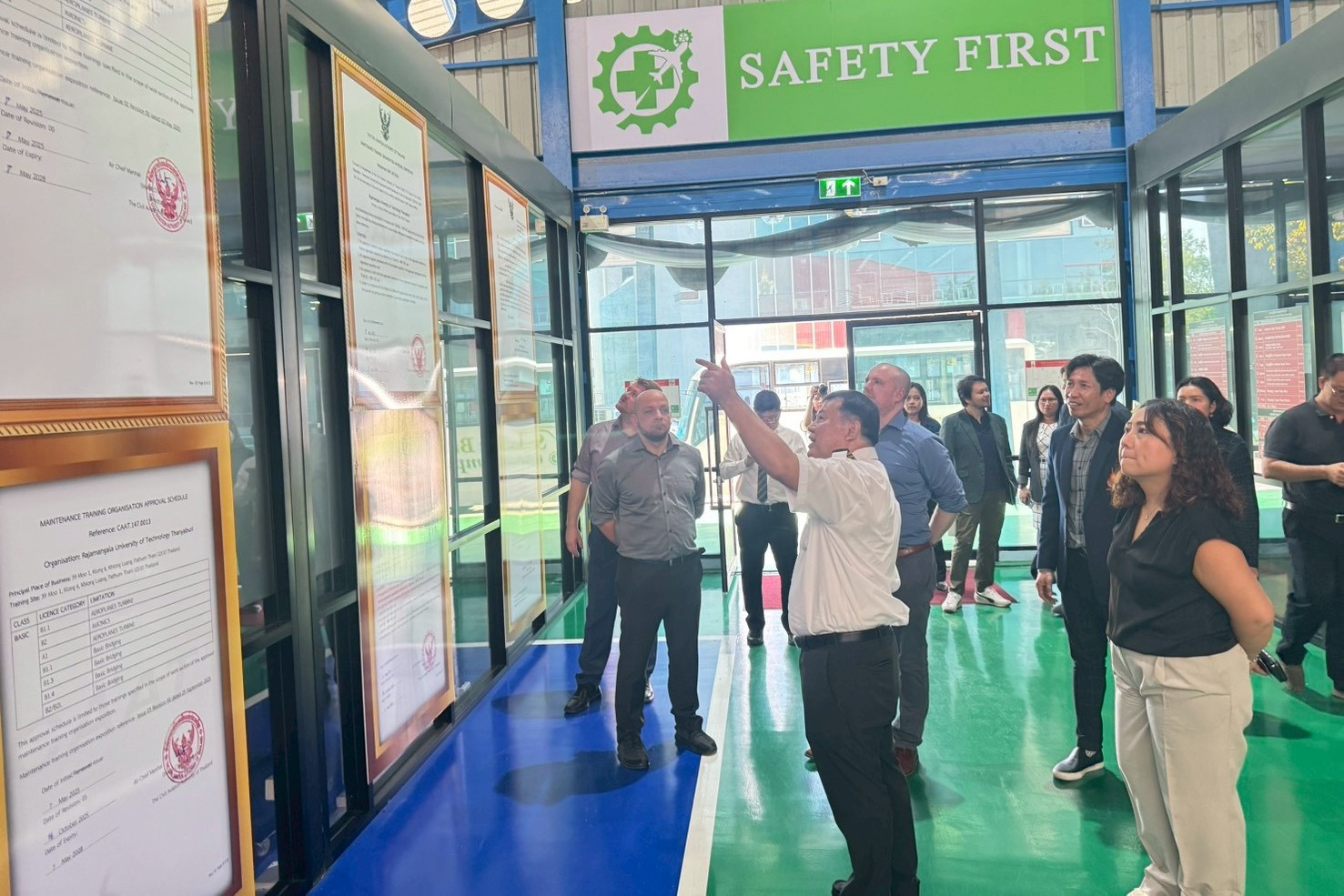 คณะผู้แทนได้ร่วมกันลงพื้นที่เยี่ยมชมศูนย์วิจัยและออกแบบงานไม้สถาปัตยกรรม หน่วยวิจัยวัสดุที่เป็นมิตรต่อสิ่งแวดล้อม และสถาบันการบินแห่ง มทร.ธัญบุรี เพื่อแลกเปลี่ยนองค์ความรู้และสำรวจโอกาสในการทำงานวิจัยร่วมกัน