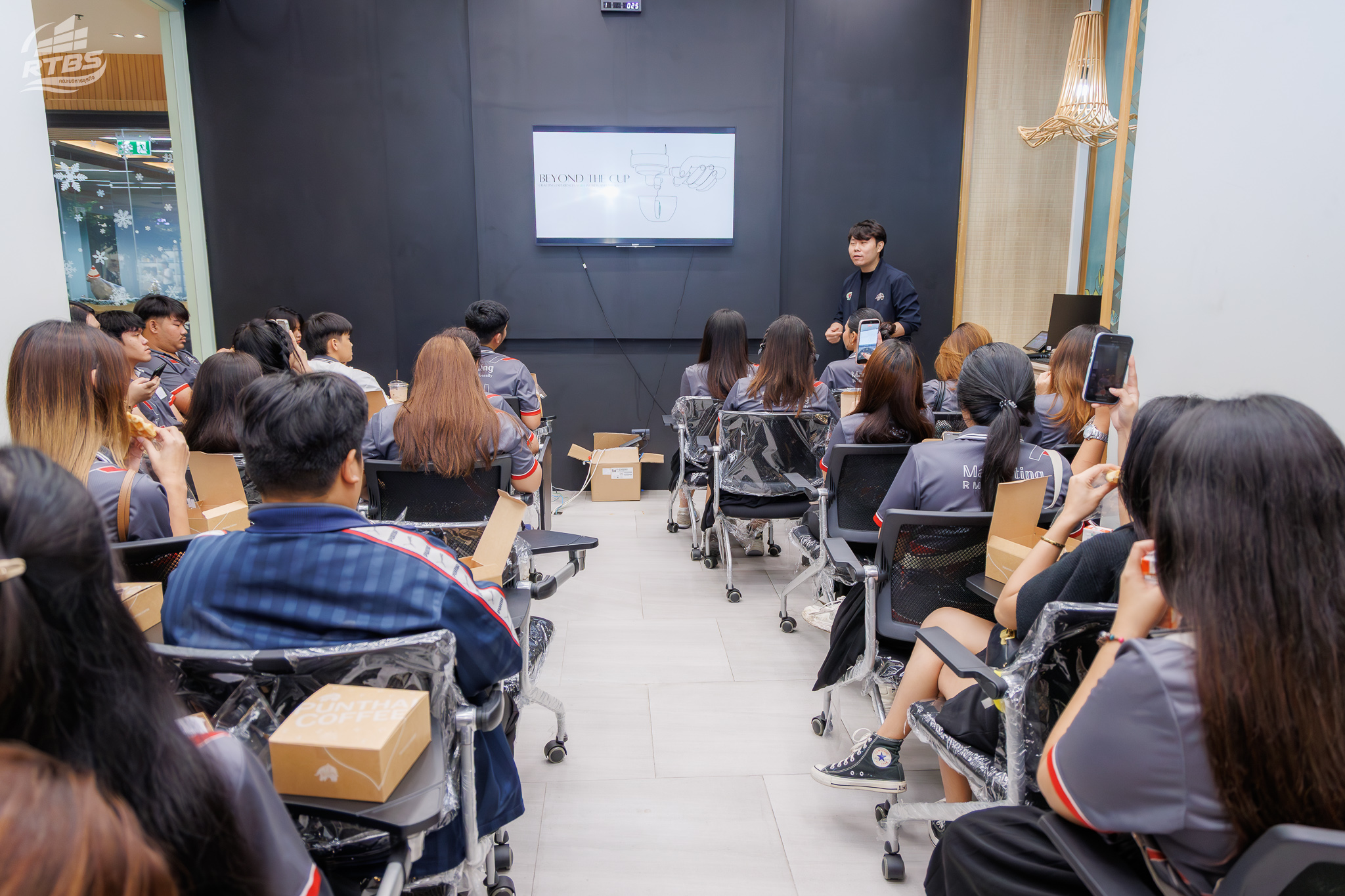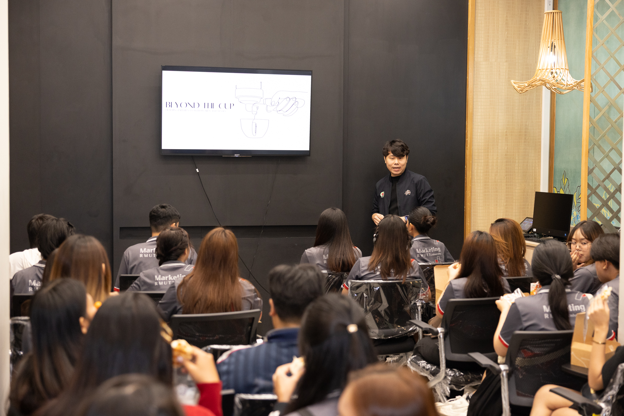 ภายในกิจกรรม นักศึกษาได้รับการพาชมพื้นที่สำนักงาน ศึกษาบรรยากาศการทำงาน และแนวคิดการดำเนินงานของ กาแฟพันธุ์ไทย ซึ่งสะท้อนการผสานอัตลักษณ์ความเป็นไทยเข้ากับการบริหารธุรกิจสมัยใหม่ พร้อมรับฟังการถ่ายทอดประสบการณ์ด้านกลยุทธ์การตลาด การพัฒนาผลิตภัณฑ์ และการตอบสนองต่อพฤติกรรมผู้บริโภคยุคดิจิทัล อันเป็นองค์ความรู้สำคัญที่ช่วยให้นักศึกษาเห็นภาพการนำทฤษฎีทางการตลาดมาประยุกต์ใช้ในสถานการณ์จริง