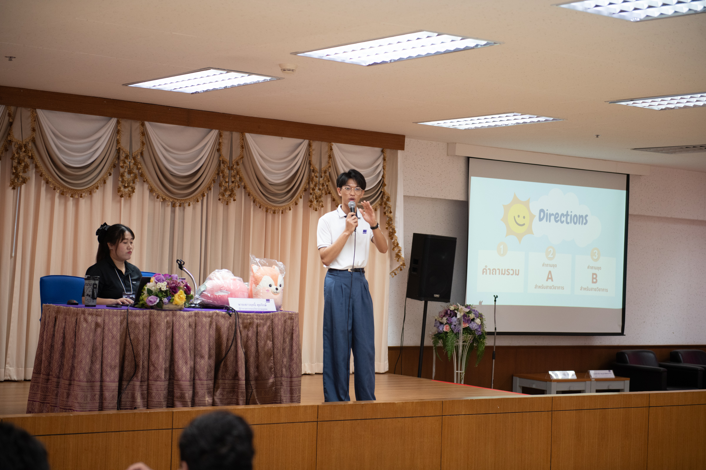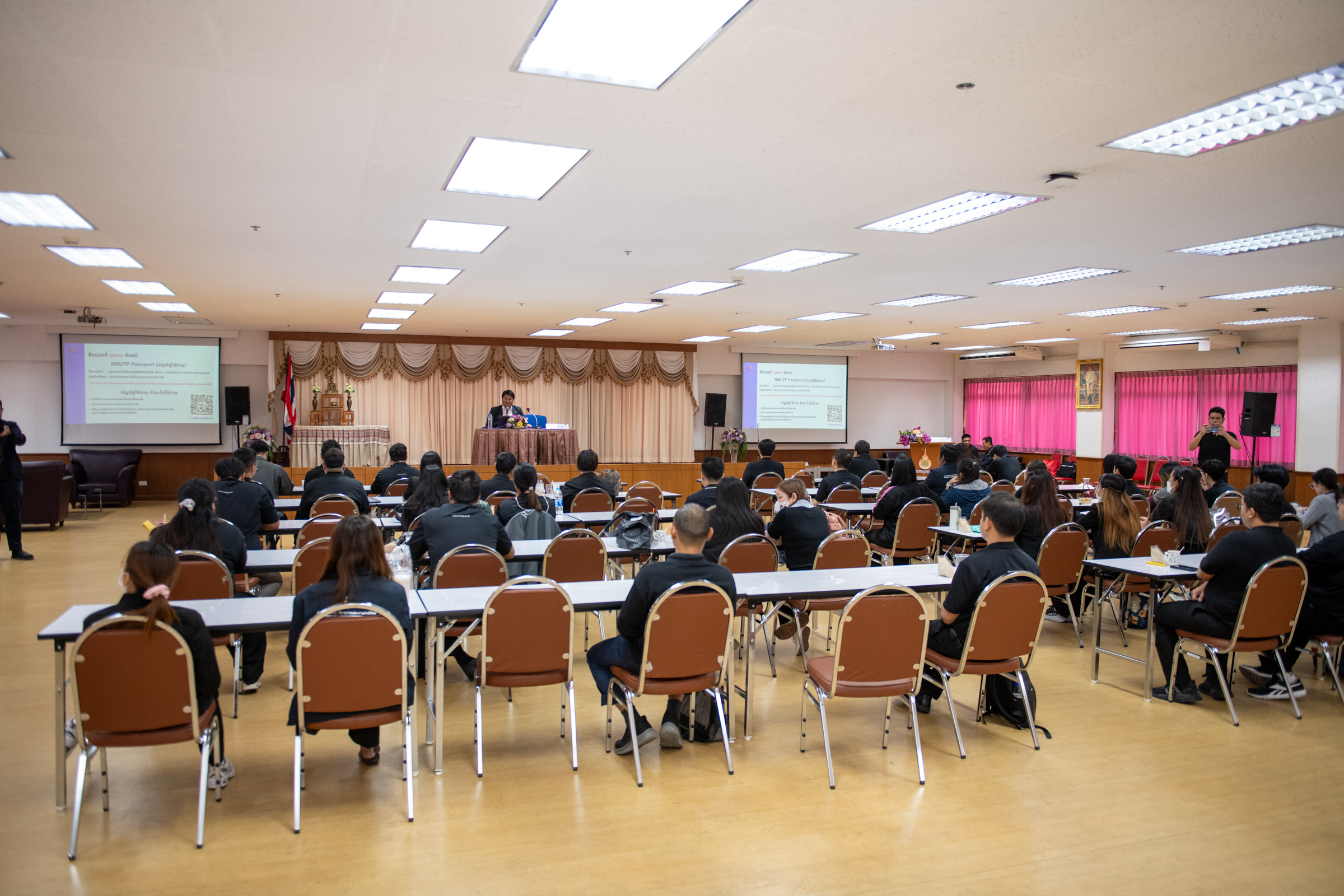 ทั้งนี้ได้รับเกียรติจาก นายเชาวลิต สมบูรณ์พัฒนากิจ ผู้อำนวยการสำนักวิทยบริการและเทคโนโลยีสารสนเทศเป็นวิทยากรบรรยายให้ความรู้เกี่ยวกับระบบสารสนเทศของมหาวิทยาลัย และนายเชาวฤทธิ์ สุขรักษ์ รักษาราชการแทน ผู้อำนวยการสำนักงานอธิการบดี และผู้อำนวยการกองบริหารงานบุคคล เป็นวิทยากรบรรยายเรื่อง เส้นทางความก้าวหน้าและสิทธิประโยชน์ นอกจากนี้ยังได้รับเกียรติจาก ว่าที่ร้อยตรี นรภัทร แย้มสรวลและคณะ จากกรมพลศึกษา เป็นวิทยากรในการทำกิจกรรมกลุ่มการสร้างสัมพันธภาพบุคลากร