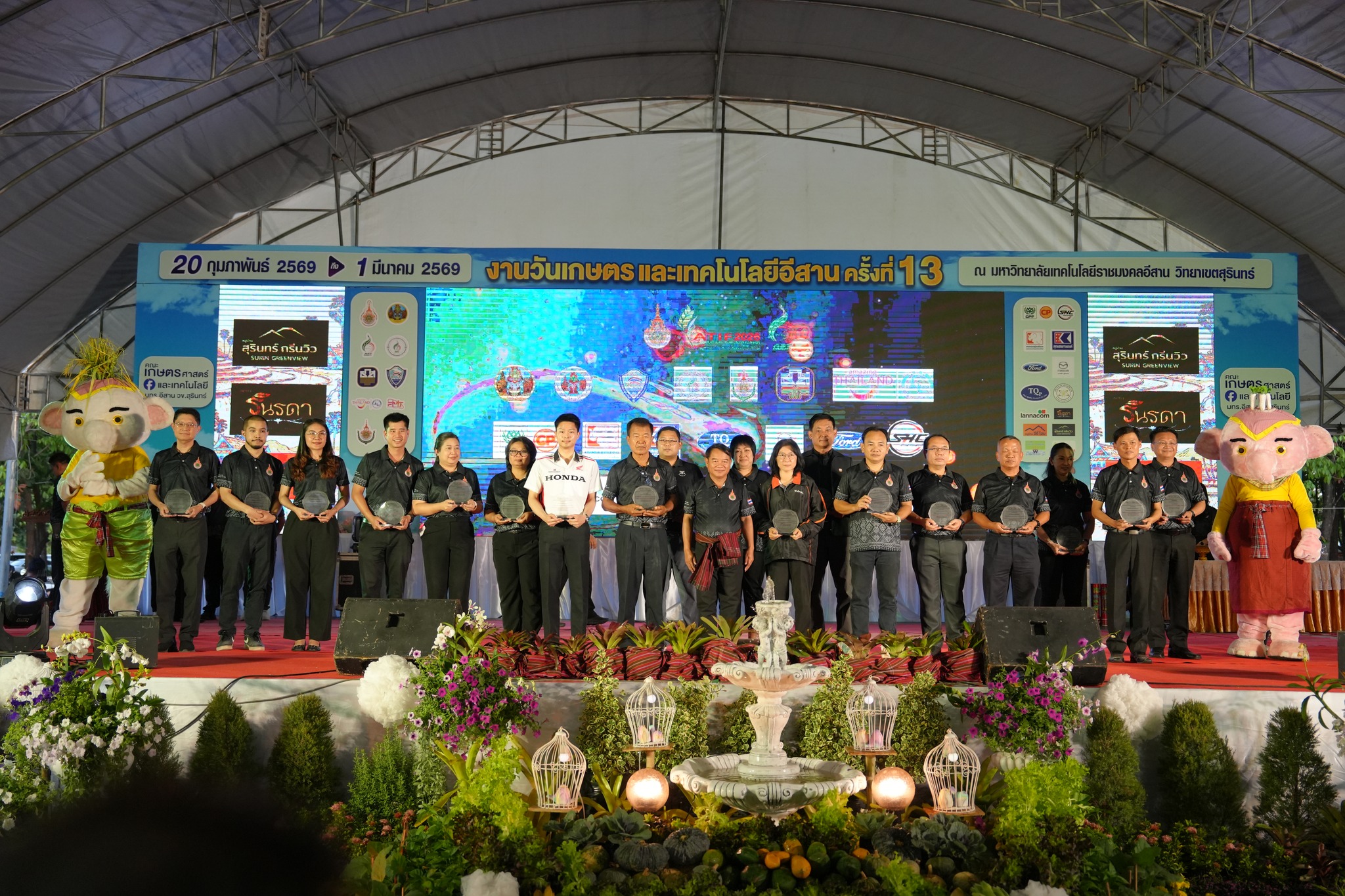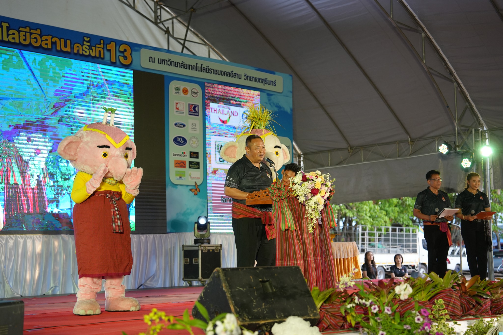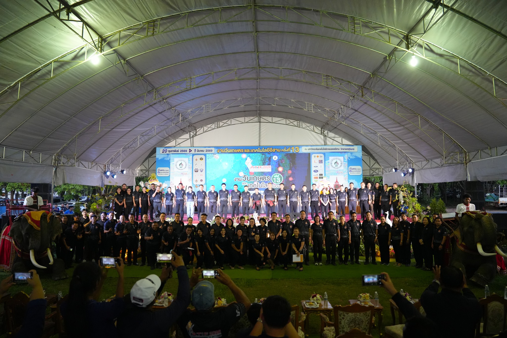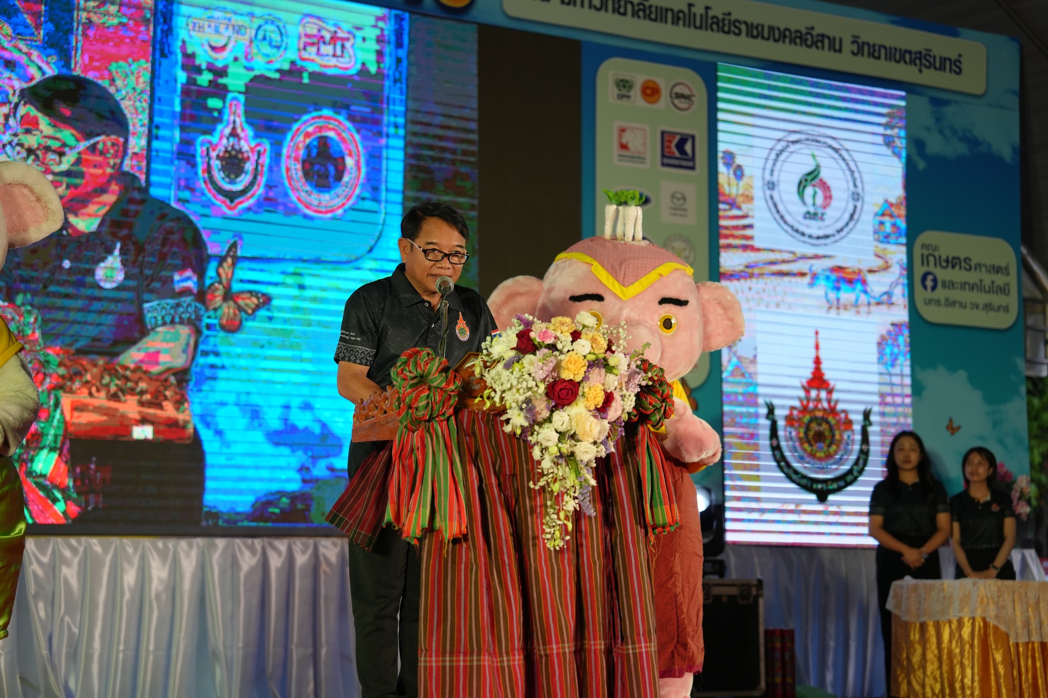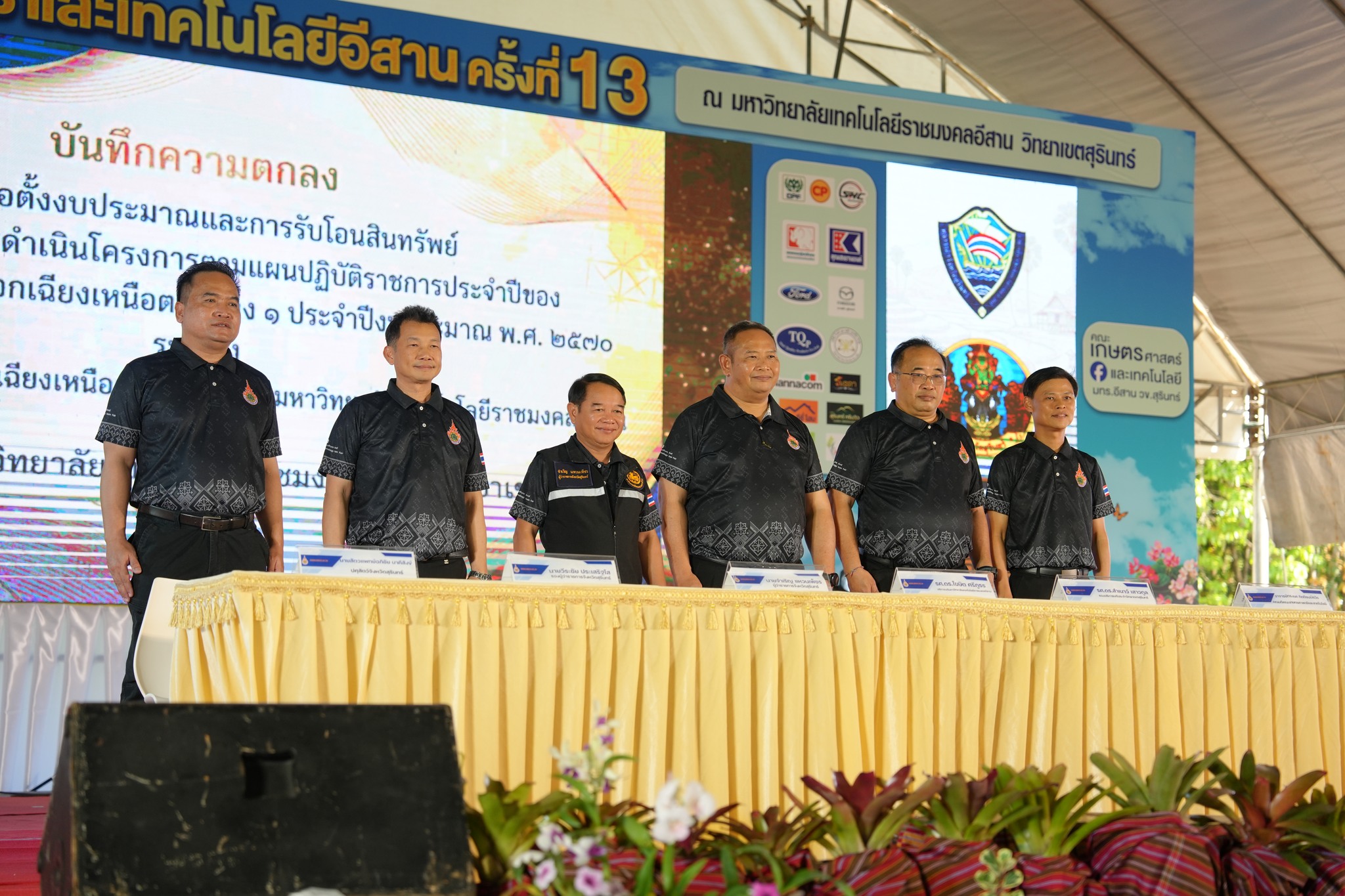 ในการนี้ รองศาสตราจารย์ ดร.โฆษิต ศรีภูธร อธิการบดีมหาวิทยาลัยเทคโนโลยีราชมงคลอีสาน พร้อมด้วย รองผู้ว่าราชการจังหวัดสุรินทร์ ปลัดจังหวัด หัวหน้าส่วนราชการ ข้าราชการศาล ทหาร ตำรวจ ตลอดจนภาคีเครือข่ายทั้งภาครัฐและภาคเอกชน เข้าร่วมพิธีอย่างพร้อมเพรียง แสดงถึงความร่วมมือบูรณาการทุกภาคส่วนในการขับเคลื่อนการพัฒนาพื้นที่ การจัดงานในครั้งนี้สะท้อนบทบาทของมหาวิทยาลัยเทคโนโลยีราชมงคลอีสานในฐานะสถาบันอุดมศึกษาของรัฐ ที่มีพันธกิจหลักด้านการจัดการเรียนการสอน การวิจัย การบริการวิชาการ และการทำนุบำรุงศิลปวัฒนธรรม โดยมุ่งพัฒนาสู่ความเป็นเลิศด้านเทคโนโลยีการเกษตร (Agriculture Technology) อย่างยั่งยืน ภายใต้นโยบายและวิสัยทัศน์ในการเป็นผู้นำด้านการจัดการศึกษาวิชาชีพที่โดดเด่นด้านเกษตรอินทรีย์และเทคโนโลยีสมัยใหม่ เพื่อผลิตบัณฑิตที่มีคุณธรรม มีสมรรถนะวิชาชีพสูง สร้างงานวิจัยที่เป็นแหล่งองค์ความรู้ และให้บริการวิชาการเพื่อพัฒนาท้องถิ่นและสังคมอย่างเป็นรูปธรรม