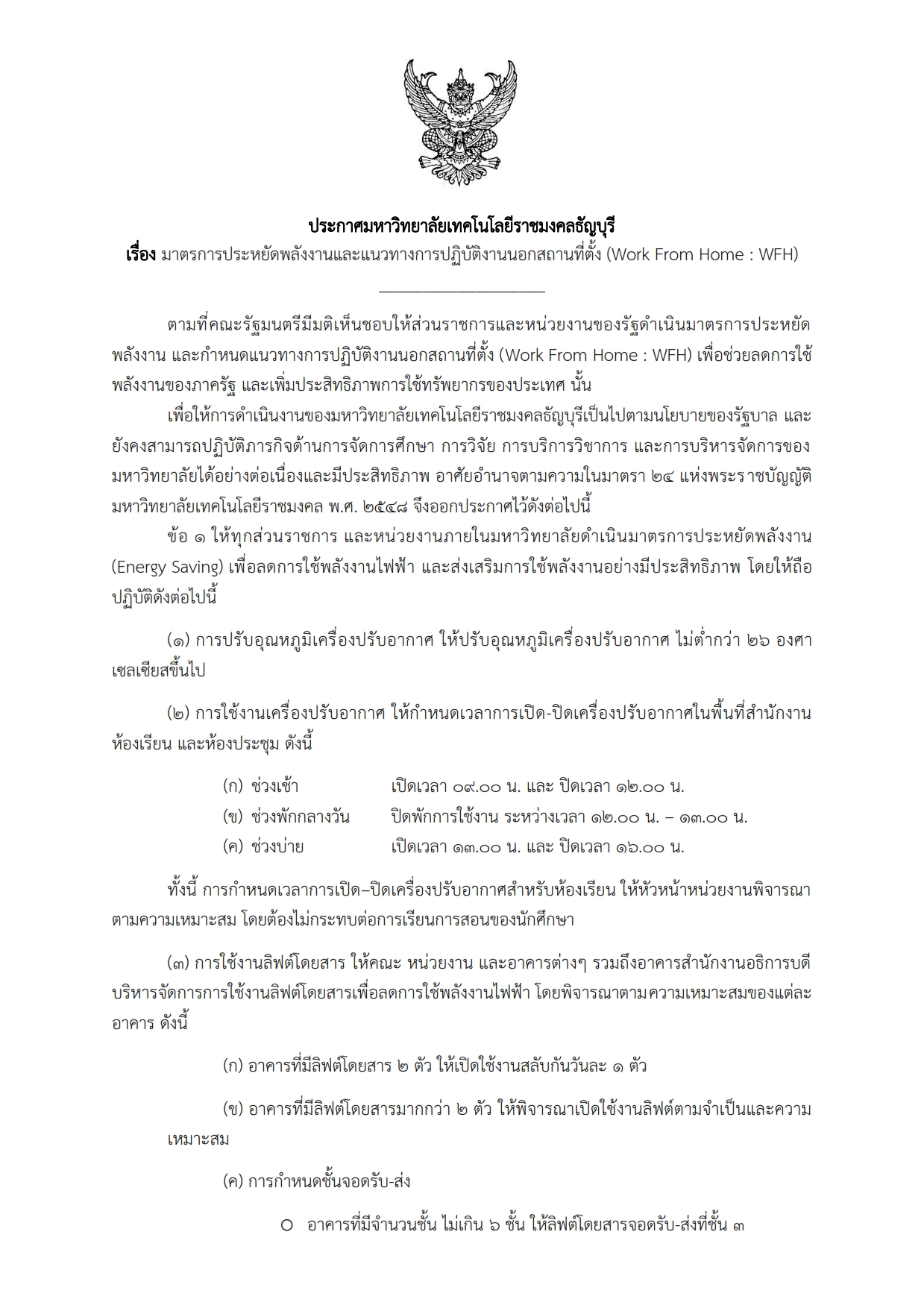 สำหรับการปรับเปลี่ยนวิถีการทำงานและใช้ชีวิตในครั้งนี้ ยอมรับว่ามีความเห็นใจและเข้าใจในความไม่สะดวกที่อาจเกิดขึ้นกับบุคลากร นักศึกษา รวมถึงผู้มาติดต่อราชการที่ต้องปรับตัวกับระเบียบปฏิบัติที่เข้มงวดขึ้น แต่มหาวิทยาลัยจำเป็นต้องดำเนินบทบาทผู้นำในการสร้างการเปลี่ยนแปลง และร่วมรับผิดชอบต่อวิกฤตการณ์ทรัพยากร เพื่อให้ประเทศไทยก้าวผ่านความท้าทายนี้ไปได้ โดยส่งผลกระทบต่อคุณภาพการศึกษา และมาตรฐานการทำงานให้น้อยที่สุด