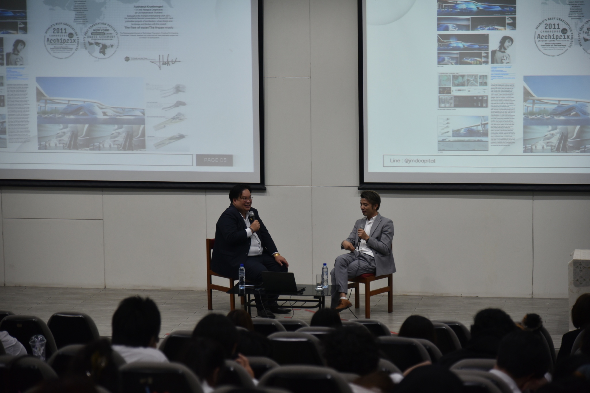 สำหรับกิจกรรมในก ารปัจฉิมนิเทศที่สำคัญ คือ การเสวนาแบ่งปันประสบการณ์จาก ศิษย์เก่าผู้ทรงคุณวุฒิที่ประสบความสำเร็จในระดับประเทศ นำโดย คุณชาญณรงค์ แก่นทอง อุปนายกสภาสถาปนิก คนที่ 1 พร้อมด้วย คุณปัทม์ สุวรรณสา (Design Director and Founder, PH/AD), คุณณัฐพล พันธุศิริ (Founder & Interior Designer, Ballsilver Interior and Design) และ คุณอรรถวุฒิ เครือทองศรี (CEO/สถาปนิก, Jumper Design Studio & JMD Capital) ซึ่งวิทยากรทุกท่านได้ร่วมสะท้อนภาพรวมของอุตสาหกรรมการออกแบบในปัจจุบัน เทคนิคการปรับตัวให้เข้ากับเทคโนโลยีที่ล้ำสมัย และจรรยาบรรณวิชาชีพที่สถาปนิกยุคใหม่พึงมีให้กับว่าที่สถาปนิกในอนาคต