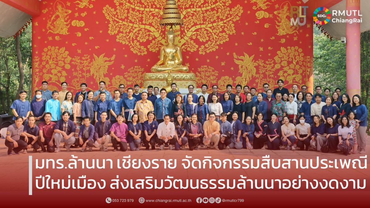 มทร.ล้านนา เชียงใหม่ จะมีการจัดพิธีสักการะสิ่งศักดิ์สิทธิ์ประจำมหาวิทยาลัย และประเพณีดำหัว ในวันที่ 23 เมษายน 2569 ณ มหาวิทยาลัยเทคโนโลยีราชมงคลล้านนา เชียงใหม่ จึงขอเชิญชวนศิษย์เก่าทุกท่าน ร่วมกิจกรรม และแต่งกายด้วยชุดพื้นเมือง สามารถติดตามรายละเอียดเพิ่มเติมได้ที่เฟซบุ๊ค มหาวิทยาลัยเทคโนโลยีราชมงคลล้านนา