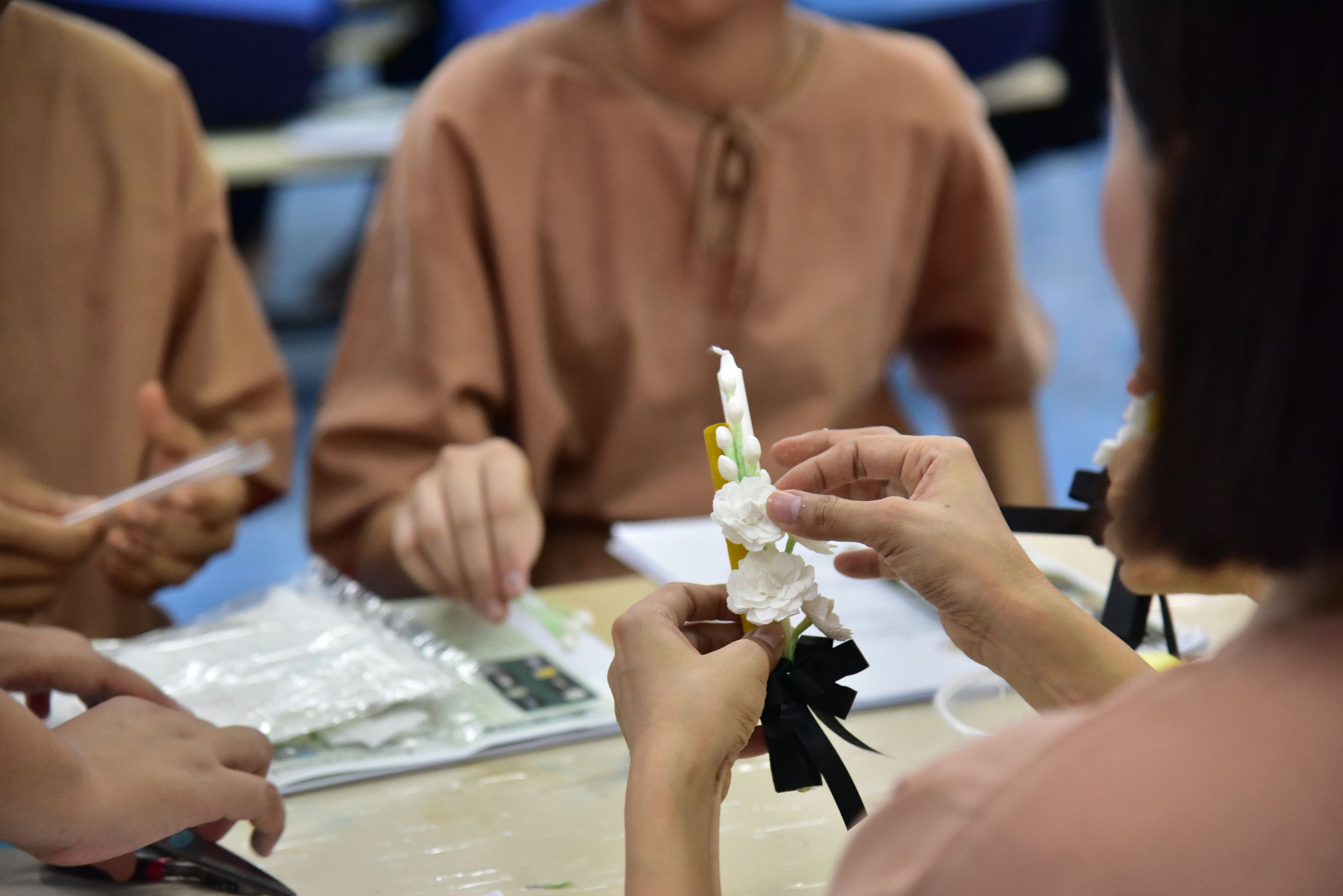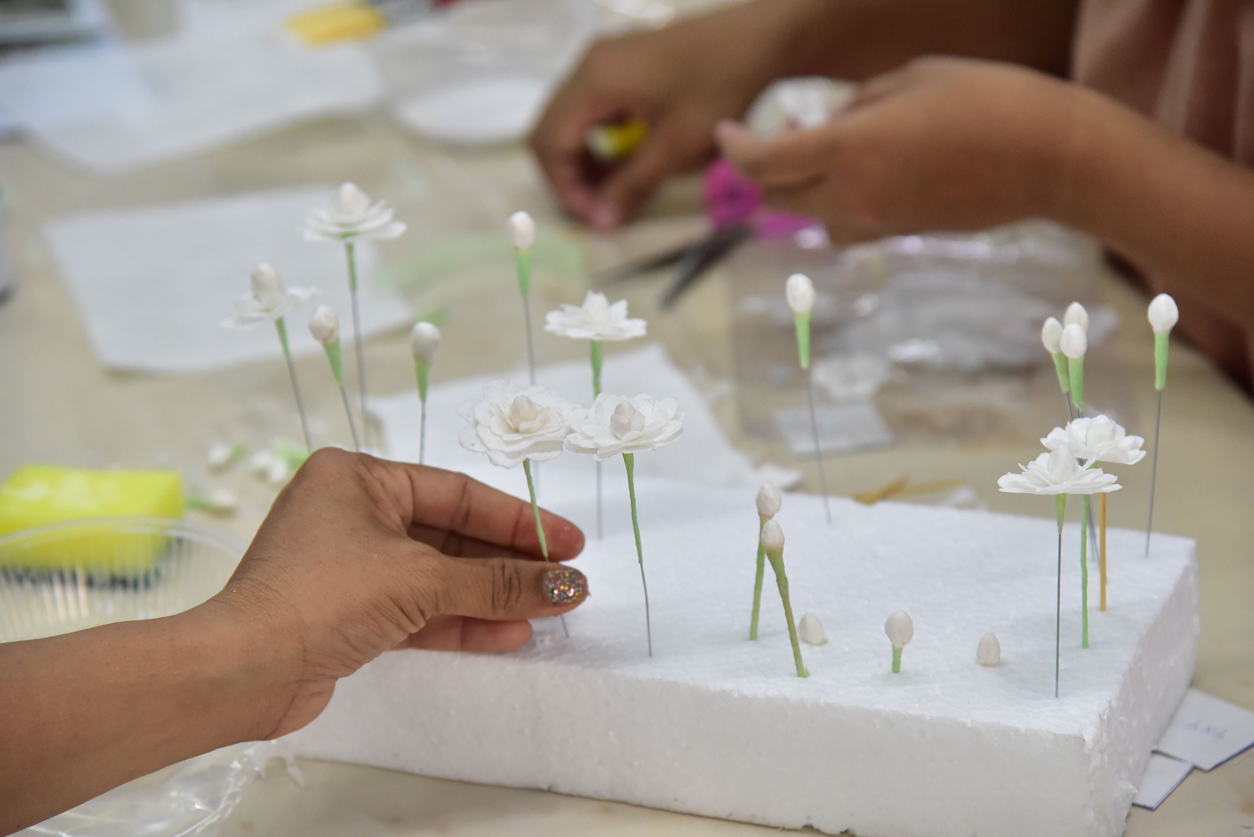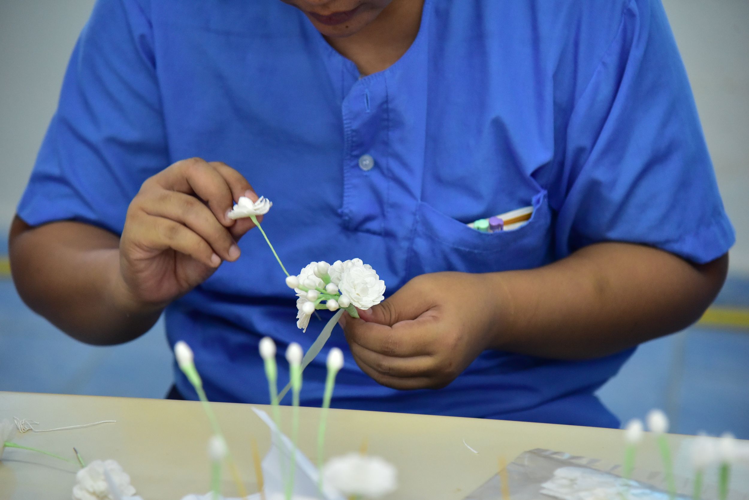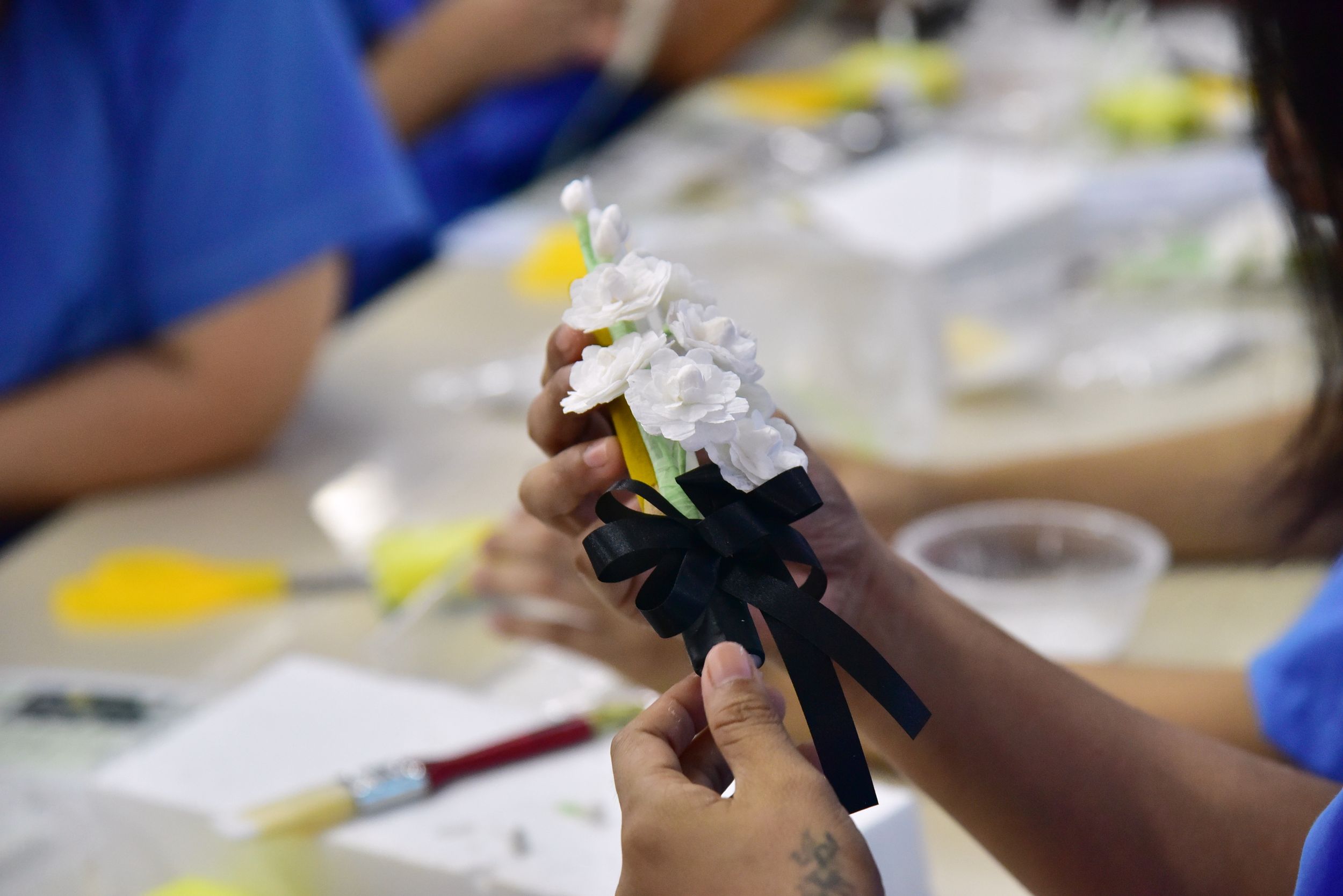 กิจกรรมภายในโครงการ เน้นการเรียนรู้แบบ Active Learning แบ่งออกเป็น 2 ส่วนหลัก คือ การบรรยายทฤษฎีพื้นฐานด้านงานศิลปประดิษฐ์เพื่อสร้างแรงบันดาลใจ และภาคปฏิบัติที่เข้มข้น โดยมีผู้ต้องขังหญิงในเรือนจำธัญบุรีเข้าร่วมจำนวน 30 คน ไฮไลต์สำคัญอยู่ที่การสอนเทคนิคการเปลี่ยน “กระดาษทิชชู” ให้กลายเป็นดอกมะลิที่มีความอ่อนช้อยสวยงามเสมือนจริง รวมถึงการต่อยอดเทคนิคการเข้าช่อดอกไม้จันทน์ เพื่อถวายในงานพระราชพิธีถวายพระเพลิงพระบรมศพของสมเด็จพระพันปีหลวง