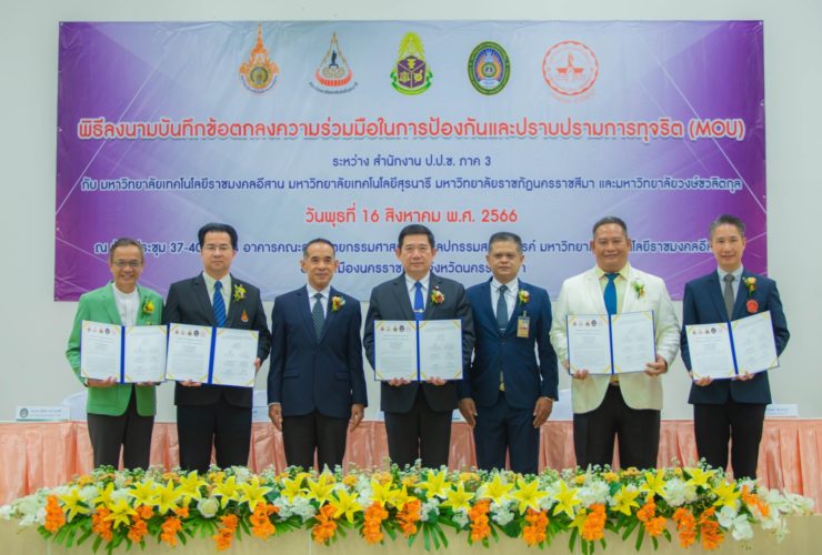 วันที่ 16 สิงหาคม 2566 มหาวิทยาลัยเทคโนโลยีราชมงคลอีสาน โดย รองศาสตราจารย์ ดร.โฆษิต ศรีภูธร อธิการบดี มทร.อีสาน พร้อมคณะผู้บริหารและเจ้าหน้าที่มหาวิทยาลัย ให้การต้อนรับ นายนิวัติไชย เกษมมงคล เลขาธิการคณะกรรมการป้องกันและปราบปรามการทุจริตแห่งชาติ (ป.ป.ช.) นายณัฐวุฒ ขมประเสริฐ รองเลขาธิการคณะกรรมการ ป.ป.ช.ภาค 3 คณะผู้บริหารมหาวิทยาลัยเทคโนโลยีสุรนารี คณะผู้บริหารมหาวิทยาราชภัฏนครราชสีมา และคณะผู้บริหารมหาวิทยาลัยวงษ์ชวลิตกุล ในพิธีลงนามบันทึกข้อตกลงความร่วมมือในการป้องกันและปราบปรามการทุจริตระหว่าง สํานักงาน ป.ป.ช. ภาค 3 กับ 4 มหาวิทยาลัยในจังหวัดนครราชสีมา ณ ห้องประชุม 37-401 ชั้น 4 อาคารคณะสถาปัตยกรรมศาสตร์และศิลปกรรมสร้างสรรค์ มหาวิทยาลัยเทคโนโลยีราชมงคลอีสาน ...