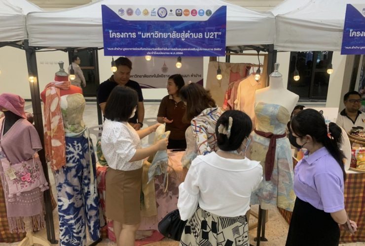งานวิจัยและบริการวิชาการ กองการศึกษา มหาวิทยาลัยเทคโนโลยีราชมงคล (มทร.)ล้านนา ลำปาง นำผลงาน Eco printing เข้าร่วมจัดแสดงในงานตลาดนัด คบจ. ส่งต่อความสุข สนับสนุน SME เมื่อวันที่ 29 มิถุนายน 2566 ณ หอประชุมศาลากลางจังหวัดลำปาง . ผลงาน Eco printing เป็นกระบวนการพิมพ์ที่เป็นมิตรกับสิ่งแวดล้อม ใช้วิธีการพิมพ์ผ้าด้วยใบไม้ ถ่ายโอนสีและโครงสร้างจากใบไม้สู่ผ้า เป็นการสร้างสรรค์ผลิตภัณฑ์ผ้าที่ใช้วัสดุจากธรรมชาติ ทำให้เกิดสีและลวดลายที่สวยงาม ซึ่งเป็นหนึ่งในผลงานวิจัยของอาจารย์ณัฐอมร จวงเจิม อาจารย์คณะวิทยาศาสตร์และเทคโนโลยีการเกษตร . งานตลาดนัด คบจ. ส่งต่อความสุข สนับสนุน SME จัดโดยสำนักงานคลังจังหวัดลำปาง ร่วมกับภาคีเครือข่าย เพื่อส่งเสริมสนับสนุนด้านช่องทางการตลาดให้แก่ผู้ประกอบการ ...
