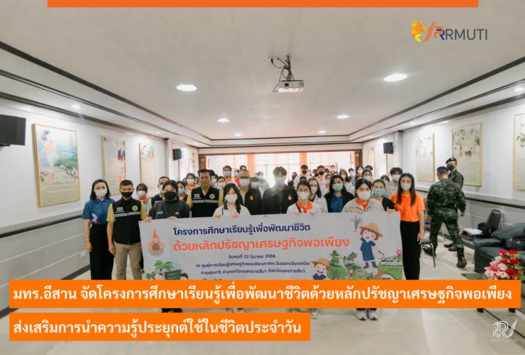 วันที่ 22 มีนาคม 2566 มหาวิทยาลัยเทคโนโลยีราชมงคลอีสาน โดย รองศาสตราจารย์ ดร.โฆษิต ศรีภูธร อธิการบดีมหาวิทยาลัยเทคโนโลยีราชมงคลอีสาน มอบหมายให้ งานพัฒนาทักษะวินัย และประสบการณ์นักศึกษา กองพัฒนานักศึกษา จัดโครงการศึกษาเรียนรู้เพื่อพัฒนาชีวิตด้วยหลักปรัชญาเศรษฐกิจพอเพียง ณ ศูนย์การเรียนรู้เศรษฐกิจพอเพียงภาคตะวันออกเฉียงเหนือ ค่ายสุรนารี อำเภอเมือง จังหวัดนครราชสีมา ทั้งนี้ ได้รับเกียรติจากอาจารย์สรวิศ ต.ศิริวัฒนา ผู้ช่วยอธิการบดี มทร.อีสาน เป็นประธานกล่าวเปิดโครงการ โดยมี นางสาวสุวรรณี ทนงสำโรง พลเสน รักษาราชการแทนผู้อำนวยการกองพัฒนานักศึกษา พร้อมด้วยบุคลากรกองพัฒนานักศึกษา และนักศึกษาเข้าร่วม โครงการ จำนวนทั้งสิ้น 100 คน ซึ่ง ภายในโครงการมีกิจกรรมการบรรยายให้ความรู้ เรื่อง“ในหลวงรัชกาลที่ ...
