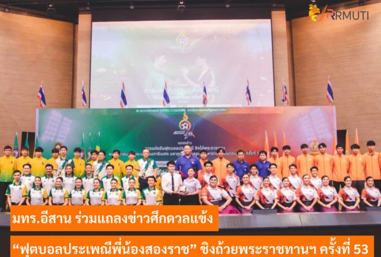 วันที่ 1 กุมภาพันธ์ 2566 มหาวิทยาลัยเทคโนโลยีราชมงคลอีสาน โดย รองศาสตราจารย์ ดร.โฆษิต ศรีภูธร อธิการบดีมหาวิทยาลัยเทคโนโลยีราชมงคลอีสาน พร้อมด้วย ผู้ช่วยศาสตราจารย์สุรพจน์ วัชโรภากุล รองอธิการบดีฝ่ายกิจการนักศึกษาและศิษย์เก่าสัมพันธ์ และ รองศาสตราจารย์ ดร.บัณฑิต กฤตาคม รองอธิการบดีฝ่ายวิจัย พัฒนานวัตกรรม และบริการวิชาการ ในฐานะผู้จัดการทีมฟุตบอล มทร.อีสาน ร่วมพิธีแถลงข่าว การจัดการแข่งขันฟุตบอลประเพณีชิงโล่พระราชทาน พระบาทสมเด็จพระบรมชนกาธิเบศร มหาภูมิพลอดุลยเดชมหาราช บรมนาถบพิตร ครั้งที่ 53 ระหว่าง มหาวิทยาลัยราชภัฏนครราชสีมา (มรนม.) กับ มหาวิทยาลัยเทคโนโลยีราชมงคลอีสาน (มทร.อีสาน) ณ หอประชุมใหม่ มหาวิทยาลัยราชภัฏนครราชสีมา ซึ่งทั้ง ...