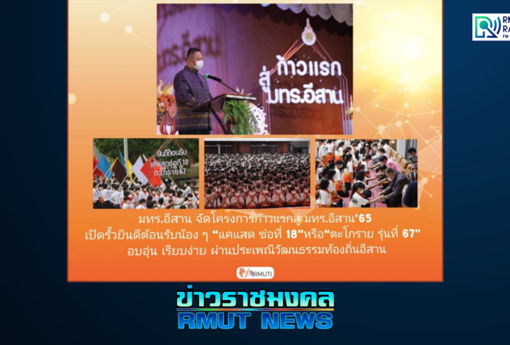 เมื่อวันที่ 25 มิถุนายน 2565 มหาวิทยาลัยเทคโนโลยีราชมงคลอีสาน นครราชสีมา โดย กองพัฒนานักศึกษา องค์การนักศึกษา และสโมสรนักศึกษาทั้ง 4 คณะ จัดโครงการก้าวแรกสู่ มทร.อีสาน ประจำปีการศึกษา 2565 โดยมี นักศึกษาใหม่เข้าร่วมกิจกรรม จำนวนกว่า 4,000 คน บรรยากาศเป็นไปอย่างเรียบง่ายและอบอุ่น โดยมีคณะผู้บริหาร คณาจารย์ และนักศึกษาที่กำลังศึกษาอยู่ในรั้ว มทร.อีสาน ให้การต้อนรับ ซึ่งมีกิจกรรมการแสดงสันทนาการจากพี่ๆ ผู้นำนักศึกษา พิธีอัญเชิญตราประจำมหาวิทยาลัย การขับร้องเพลงประจำมหาวิทยาลัย โดยชมรมดนตรีพื้นถิ่นอีสาน การกล่าวให้โอวาทแก่นักศึกษา โดยรองศาสตราจารย์ ดร.โฆษิต ศรีภูธร อธิการบดี มทร.อีสาน การแสดงจากชมรมดนตรีพื้นถิ่นอีสาน พิธีผูกข้อมือรับคำอวยพร ...