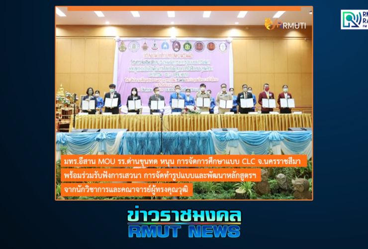 วันที่ 22 สิงหาคม 2565 มหาวิทยาลัยเทคโนโลยีราชมงคลอีสาน โดย รองศาสตราจารย์ ดร.โฆษิต ศรีภูธร อธิการบดี มทร.อีสาน มอบหมายให้ ผู้ช่วยศาสตราจารย์ณรงค์ ผลวงษ์ รองอธิการบดีฝ่ายบริหารและพัฒนาทรัพยากรมนุษย์ พร้อมคณะผู้บริหารมหาวิทยาลัย ร่วมลงนามบันทึกข้อตกลงความร่วมมือ โครงการส่งเสริมเวทีเสวนาและประชาคมเพื่อการจัดทำรูปแบบและพัฒนาหลักสูตรต่อเนื่องเชื่อมโยงการศึกษาขั้นพื้นฐานกับอาชีวศึกษาและอุดมศึกษา (CLC) จังหวัดนครราชสีมา ประจำปี พ.ศ. 2565 ร่วมกับ โรงเรียนด่านขุนทด และสถาบันการศึกษาในจังหวัดนครราชสีมา โดยมีวัตถุประสงค์เพื่อผสานความร่วมมือและสร้างเครือข่ายในการจัดทำรูปแบบและพัฒนาหลักสูตรต่อเนื่องเชื่อมโยงการศึกษาขั้นพื้นฐานกับอาชีวศึกษาและอุดมศึกษา (CLC) จังหวัดนครราชสีมา ประจำปี พ.ศ. 2565 . โดยการสร้างความรู้ความเข้าใจเกี่ยวกับโครงการ CLC ในกับหน่วยงานการศึกษาและผู้มีส่วนเกี่ยวข้อง และผลักดันให้เกิดเป็นรูปธรรม เกิดความมั่นคงและยั่งยืน ส่งเสริมการศึกษาตลอดชีวิต ตามมาตรฐานการเทียบโอนจากการศึกษาในระบบ ...