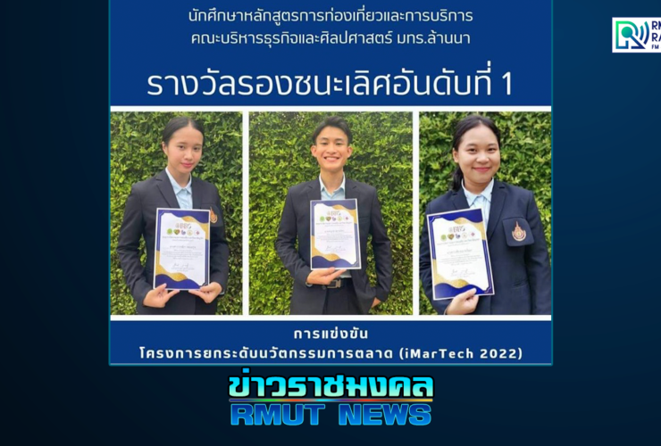 นักศึกษา หลักสูตรการท่องเที่ยวและการบริการ ทีม Innomart มทร.ล้านนา เข้ารับรางวัล รองชนะเลิศอันดับที่ 1 จากการจัดประกวดโครงงานสำหรับนิสิตนักศึกษาในหัวข้อ การยกระดับนวัตกรรมการตลาดและความสามารถในการแข่งขันของกลุ่มวิสาหกิจ SMEs ด้านผลิตภัณฑ์เกษตรแปรรูปประเภทอาหารด้วยเทคโนโลยีดิจิทัล (iMarTECH 2022) เมื่อวันเสาร์ที่ 21 พฤษภาคม 2565 ณ โรงแรมบางแสนเฮอริเทจ อ.เมือง จ.ชลบุรี . นางสาวเพียงแข หยั่นมะ นางสาววรรณิกา สลอมทุน และนายสรยุทธ สมานมิตร นักศึกษาหลักสูตรการท่องเที่ยวและการบริการ คณะบริหารธุรกิจและศิลปศาสตร์ ทีม InnoMart มทร.ล้านนา คว้ารางวัลรองชนะเลิศอันดับที่ 1 พร้อมรับเงินรางวัลจำนวน 20,000 บาท จากการแข่งขันโครงงานวิจัย ...