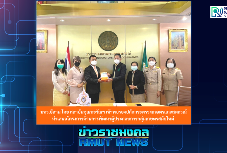 เมื่อวันที่ 17 มกราคม 2565 มทร.อีสาน โดย ผู้ช่วยศาสตราจารย์ ดร.เอนก เจริญภักดี รองอธิการบดีฝ่ายกิจการพิเศษ พร้อมด้วย ผู้ช่วยศาสตราจารย์ ดร.บุญญาพร ดวงสา ผู้อำนวยการสถาบันชุณหะวัณเพื่อการพัฒนาธุรกิจเอสเอ็มอีอย่างยั่งยืน และ ดร.อุษณา แจ้งคล้อย รองผู้อำนวยการสถาบันชุณหะวัณฯ เข้าพบ นายอำพันธุ์ เวฬุตันติ รองปลัดกระทรวงเกษตรและสหกรณ์ นางสิริดา อุปนันท์ ผู้อำนวยการส่งเสริมพืชสมุนไพรและเครื่องเทศ และนางอุบล มากอง ผู้อำนวยการกองพัฒนาเกษตรกรเพื่อนำเสนอโครงการพัฒนาและยกระดับเกษตรกรคลัสเตอร์ต้นแบบสู่ความเป็นเลิศ รวมถึงหารือแนวทางในการพัฒนาเกษตรกรด้วยเทคโนโลยี ณ ห้องประชุมกระทรวงเกษตรและสหกรณ์ . โดยประเด็นในการนำเสนอในครั้งนี้ สถาบันชุณหะวัณฯ ได้นำเสนอโครงการเพื่อการพัฒนาเกษตรกร ในคลัสเตอร์กัญชงกัญชาและสมุนไพร ที่สามารถเชื่อมโยงไปสู่ธุรกิจสุขภาพการแพทย์แผนไทย โดยอาศัยองค์ความรู้และความเชี่ยวชาญด้านเทคโนโลยีของมหาวิทยาลัย และได้นำเสนอตัวอย่างเทคโนโลยีกำจัดแมลงและไข่แมลงในข้าวสารด้วยคลื่นความถี่วิทยุ ...