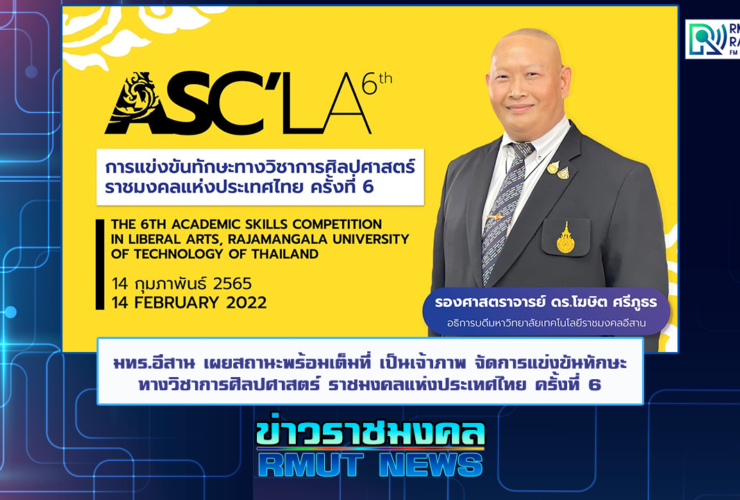 รองศาสตราจารย์ ดร.โฆษิต ศรีภูธร อธิการบดีมหาวิทยาลัยเทคโนโลยีราชมงคลอีสาน เปิดเผยว่า มทร.อีสาน มีความยินดีเป็นอย่างยิ่งที่ได้รับหน้าที่เป็นเจ้าภาพจัดการแข่งขันทักษะทางวิชาการศิลปศาสตร์ราชมงคลแห่งประเทศไทย ครั้งที่ 6 ในวันที่ 14 กุมภาพันธ์ 2565 ณ มหาวิทยาลัยเทคโนโลยีราชมงคลอีสาน ซึ่งในการแข่งขันครั้งนี้ เป็นอีกหนึ่งเวทีที่นักศึกษาในเครือข่ายราชมงคลทั้ง 9 แห่ง จะได้นำทักษะและองค์ความรู้จากการเรียนการสอนของมหาวิทยาลัย มาปรับใช้ในการแข่งขันเพื่อพัฒนาทักษะฝีมือในสาขาวิชาชีพให้เกิดความเชี่ยวชาญ สำหรับ มทร.อีสาน ก็มีความพร้อมทั้งด้านสถานที่ และการเตรียมการในด้านต่างๆ โดยจะนำเทคโนโลยีที่มีอยู่ของมหาวิทยาลัยมาร่วมใช้และสนับสนุนการแข่งขันอย่างเต็มที่ . ด้าน อาจารย์ ดร.ชาคริต นวลฉิมพลี คณบดีคณะวิทยาศาสตร์และศิลปศาสตร์ มทร.อีสาน กล่าวว่า สำหรับการจัดการแข่งขันทักษะทางวิชาการศิลปศาสตร์ราชมงคลแห่งประเทศไทย ครั้งที่ 6 ภายใต้แนนวคิด “ ฮักศิลป์ ...