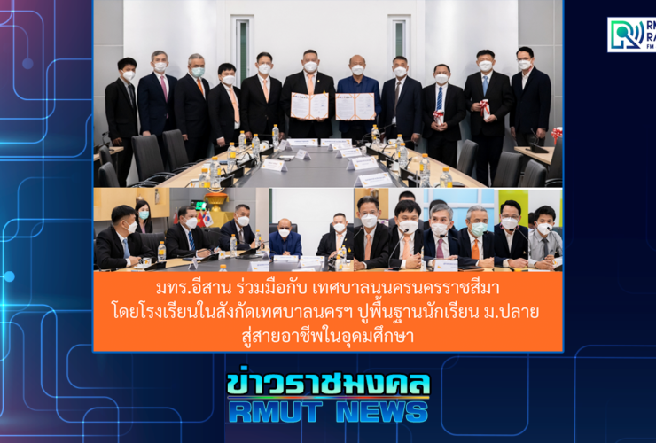 เมื่อที่ 28 กันยายน 2564 มหาวิทยาลัยเทคโนโลยีราชมงคลอีสาน จัดพิธีลงนามความร่วมมือทางวิชาการ ร่วมกับ เทศบาลนครนครราชสีมา โดยมี รองศาสตราจารย์ ดร.โฆษิต ศรีภูธร อธิการบดีมหาวิทยาลัยเทคโนโลยีราชมงคลอีสาน และคณะผู้บริหารมหาวิทยาลัยฯ เข้าร่วมลงนาม และมีนายประเสริฐ บุญชัยสุข นายกเทศมนตรีนครนครราชสีมา ร่วมลงนามความร่วมมือ และมีผู้เกี่ยวข้องของทั้งสองฝ่ายร่วมเป็นสักขีพยาน ณ ห้องประชุมแคแสด สำนักงานกิจการสภามหาวิทยาลัย . ด้าน รองศาสตราจารย์ ดร.โฆษิต ศรีภูธร อธิการบดี มทร.อีสาน เปิดเผยว่า สำหรับการทำความร่วมมือในครั้งนี้ จัดทำขึ้นเพื่อร่วมกันจัดการเรียนรู้ ตามหลักสูตรขั้นพื้นฐาน ระดับมัธยมศึกษาตอนปลาย หลักสูตรพัฒนาผู้เรียนสู่ความเป็นเลิศ ทางด้านวิชาชีพ ในการให้คำปรึกษาและการจัดการเรียนรู้ร่วมกัน โดยเน้นทั้งภาคทฤษฎีและทักษะการปฏิบัติ ทั้งนี้ยังส่งเสริมให้เกิดการจัดตั้งมหาวิทยาลัยในโรงเรียน ...