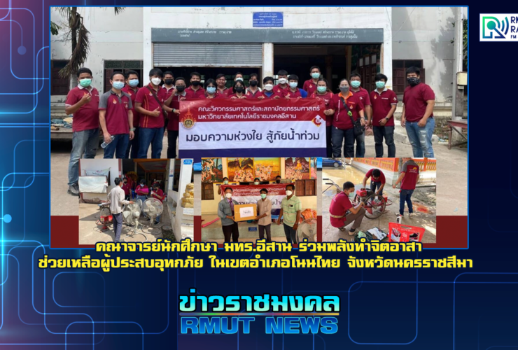จากเหตุการณ์เมื่อวันที่ 28 กันยายน 2564 ที่ผ่านมา ซึ่งเกิดเหตุมวลน้ำจากอ่างเก็บน้ำลำเชียงไกร (ตอนล่าง) ล้นตลิ่ง เอ่อท่วมชุมชนตามเส้นทางน้ำลำเชียงไกร เช่น อ.โนนไทย จ.นครราชสีมา อำเภอโนนสูง ซึ่งมีระดับน้ำท่วมสูงกว่า 2 เมตร โดยมีผู้ประสบภัยกว่า 200 หลังคาเรือน นั้น . มหาวิทยาลัยเทคโนโลยีราชมงคลอีสาน ภายใต้การกำกับดูแลของสภามหาวิทยาลัยเทคโนโลยีราชมงคลอีสาน โดย นายแพทย์ธีระเกียรติ เจริญเศรษฐศิลป์ นายกสภามหาวิทยาลัยเทคโนโลยีราชมงคลอีสาน ซึ่งรองศาสตราจารย์ ดร.โฆษิต ศรีภูธร อธิการบดี ได้มอบหมายนโยบายให้หน่วยงานต่างภายในมหาวิทยาลัย ร่วมช่วยเหลือประชาชน ผู้ประสบอุทกภัยในพื้นต่างๆ อย่างเร่งด่วน ซึ่งคณาจารย์และนักศึกษา มทร.อีสาน ได้ลงพื้นที่ให้บริการทางวิชาการแก่ ผู้ประสบอุทกภัย อย่างเต็มกำลัง ...
