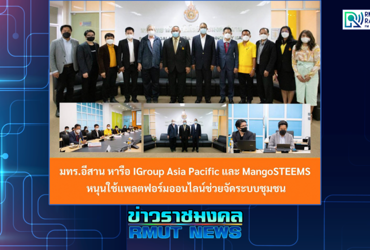 มทร.อีสาน โดย รองศาสตราจารย์ ดร.โฆษิต ศรีภูธร อธิการบดีมหาวิทยาลัยเทคโนโลยีราชมงคลอีสาน ให้การต้อนรับ นายจักร บุญหลง กรรมการผู้ทรงคุณวุฒิ คณะกรรมการความร่วมมือพัฒนาเศรษฐกิจกับประเทศเพื่อนบ้าน อดีตเอกอัครราชทูตไทยในหลายประเทศ คุณกิตติภัฏ เฉลยทรัพย์ ผู้จัดการ บริษัท mangoSTEEMS ประเทศไทย และ คุณลี พจน์ นฤตรรกกุล CEO บริษัท iGroup Asia Pacific ในการหารือเกี่ยวกับการนำ Platform Online เข้ามาใช้พัฒนาการเรียนการสอน รวมถึงการนำไปใช้ประโยชน์กับชุมชนเครือข่ายที่ทางมหาวิทยาลัยดูแลและพัฒนา . เมื่อวันที่ 12 ตุลาคม 2564 ที่ผ่านมา บริษัท mangoSTEEMS ...
