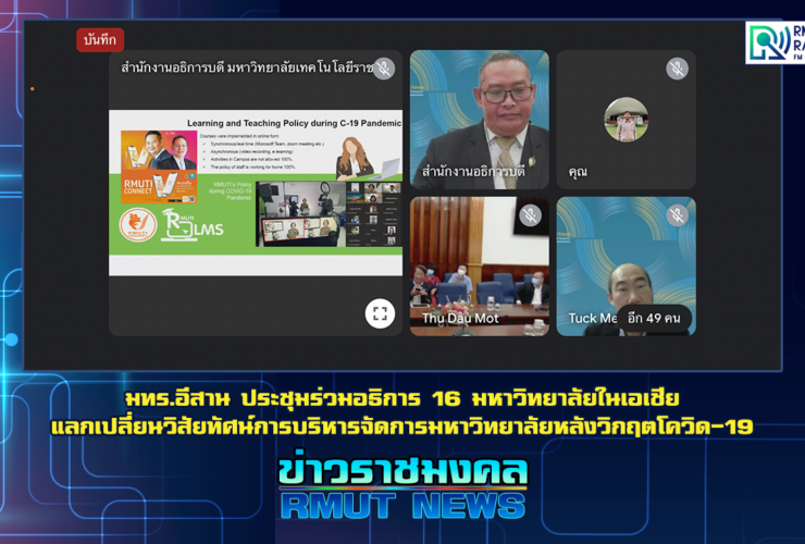 เมื่อที่ 20 กันยายน 2564 มหาวิทยาลัยเทคโนโลยีราชมงคลอีสาน จัดโครงการสัมมนา เรื่อง พลิกโฉมการจัดการเรียนการสอนในสถานการณ์การแพร่ระบาด COVID-19 (The rapid change of teaching and learning during COVID-19 pandemic) ผ่านสื่ออิเล็กทรอนิกส์ ZOOM โดยมี รองศาสตราจารย์ ดร.โฆษิต ศรีภูธร อธิการบดีมหาวิทยาลัยเทคโนโลยีราชมงคลอีสาน เป็นประธานเปิดโครงการ และมี รองศาสตราจารย์ ดร.ณรงค์ศักดิ์ ธรรมโชติ รองอธิการฝ่ายวิชาการและวิเทศน์สัมพันธ์ กล่าวรายงานวัตถุประสงค์ โดยได้รับเกียรติจาก Prof. Mike Yuan-Kuang Guu, Ph.D. อธิการบดี ...
