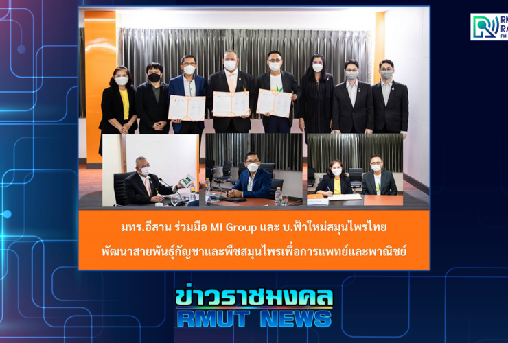 เมื่อวันที่ 27 ตุลาคม 2564 รองศาสตราจารย์ ดร.โฆษิต ศรีภูธร อธิการบดีมหาวิทยาลัยเทคโนโลยีราชมงคลอีสาน พร้อมคณะผู้บริหารมหาวิทยาลัย ร่วมต้อนรับ นายสาธิต สาตรพันธุ์ จาก บริษัท มัลติ อินโนเวชั่น เอนยิเนียริ่ง จำกัด และ นายประทีป แตงทอง จาก บริษัท ฟ้าใหม่สมุนไพรไทย จำกัด ณ ห้องประชุมแคนา 3 อาคารสำนักงานอธิการบดี มทร.อีสาน ในโอกาสเข้าหารือและทำความร่วมมือทางวิชาการในการศึกษาวิจัยนวัตกรรมการปลูกและพัฒนาสายพันธุ์พืชสมุนไพรพื้นถิ่น รวมไปถึงกัญชง กัญชา เพื่อประโยชน์ทางการแพทย์แผนไทยและการสาธารณสุข และนำไปสู่การพัฒนาผลิตภัณฑ์และการแปรรูปพืชสมุนไพรเป็นผลิตภัณฑ์เพื่อสุขภาพ ผลิตภัณฑ์สมุนไพร ผลิตภัณฑ์ทางการแพทย์ อาหาร เครื่องสำอาง และผลิตภัณฑ์อื่นที่จำหน่ายในเชิงพาณิชย์ ...
