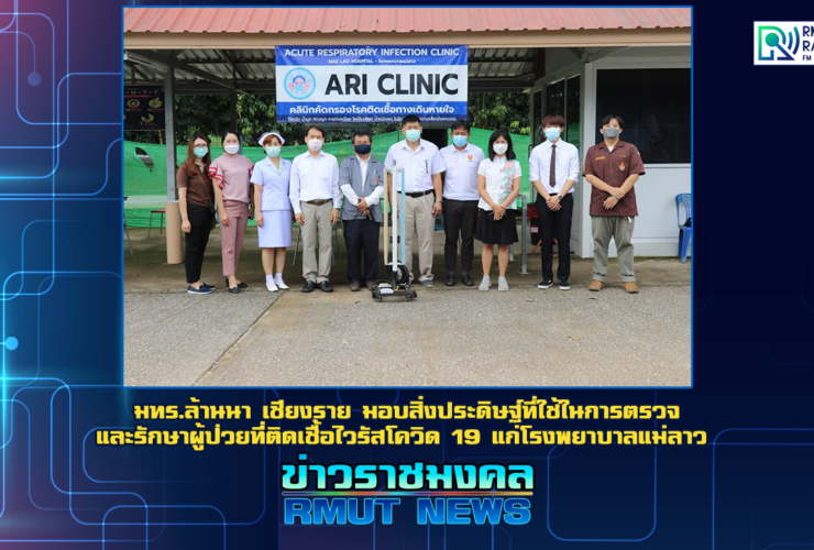 มหาวิทยาลัยเทคโนโลยีราชมงคล (มทร.) ล้านนา เชียงราย มอบสิ่งประดิษฐ์ที่ใช้ในการตรวจและรักษาผู้ป่วยที่ติดเชื้อไวรัสโควิด 19 (COVID-19) ให้กับโรงพยาบาลแม่ลาว จังหวัดเชียงราย เมื่อวันที่ 27 กรกฎาคม 2564 โดยมีผู้บริหาร อาจารย์และนักศึกษา คณะวิศวกรรมศาสตร์ มทร.ล้านนา เชียงราย เป็นตัวแทนมอบให้แก่โรงพยาบาล . อาจารย์พิเชษฐ์ กันทะวัง อาจารย์ประจำคณะวิศวกรรมศาสตร์ เปิดเผยว่า “ในครั้งนี้ ทางมหาวิทยาลัยได้มอบตู้ความดันบวกสำหรับตรวจเชื้อโควิด-19 (Swab Test) ห้องความดันลบและบวกสำหรับห้องตรวจ โดยได้พัฒนาระบบภายในห้องจนมีองค์ประกอบครบตามมาตรฐานของคลินิกคัดกรองโรคติดเชื้อทางเดินหายใจ (ARI Clinic) และชุดล้อเข็นหลอดฆ่าเชื้อด้วยรังสี UV- C สำหรับทำความสะอาดห้องพักผู้ป่วยโควิด เพื่อใช้ตรวจผู้ป่วยที่มีความเสี่ยงในการติดเชื้อ และเพื่อให้เกิดความมั่นใจในการทำงานของบุคลากรทางการแพทย์” . ผลงานทั้งหมดนี้ถูกประดิษฐ์ขึ้นโดยนักศึกษาคณะวิศวกรรมศาสตร์ ...